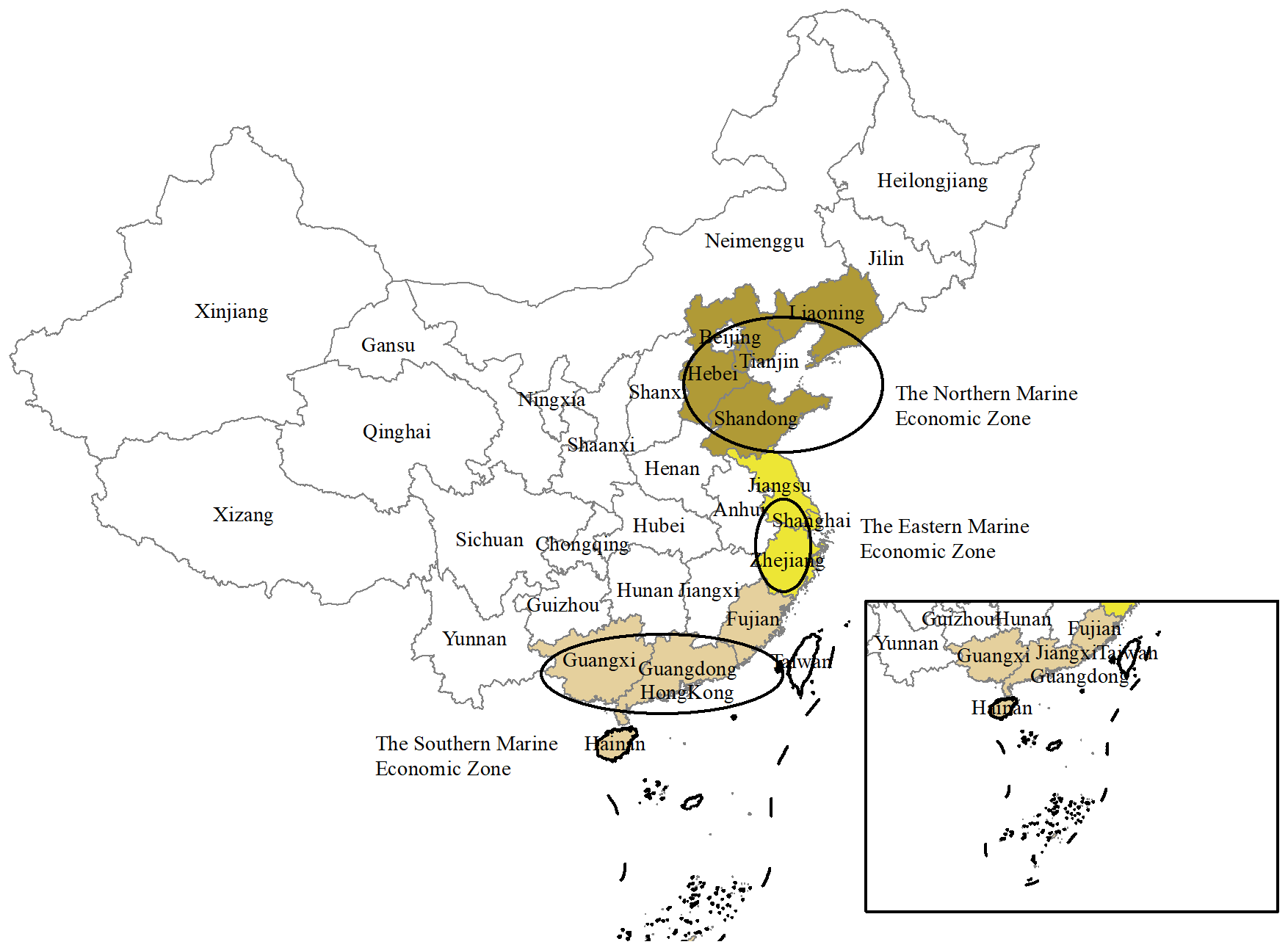 China's three major marine economic zones.