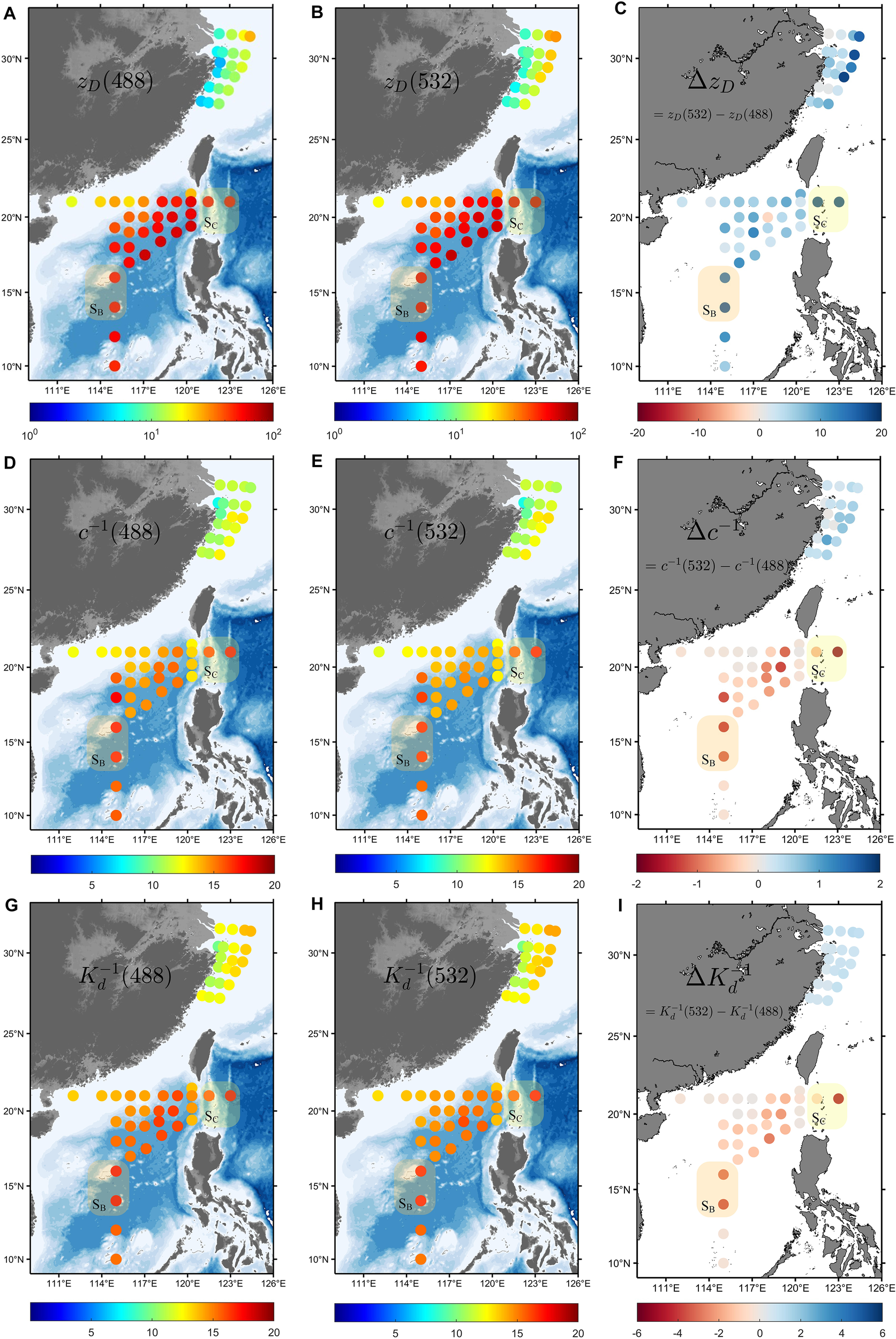 Zhou W. Cao W. Zhao J. Wang G. Zheng W. Deng L. et al . (2022). Variability of scattering and backscattering of marine particles in relation to particle concentration, size distribution, and composition off the eastern hainan coast in the south China sea. Continental Shelf Res.232, 104615. doi: 10.1016/j.csr.2021.104615