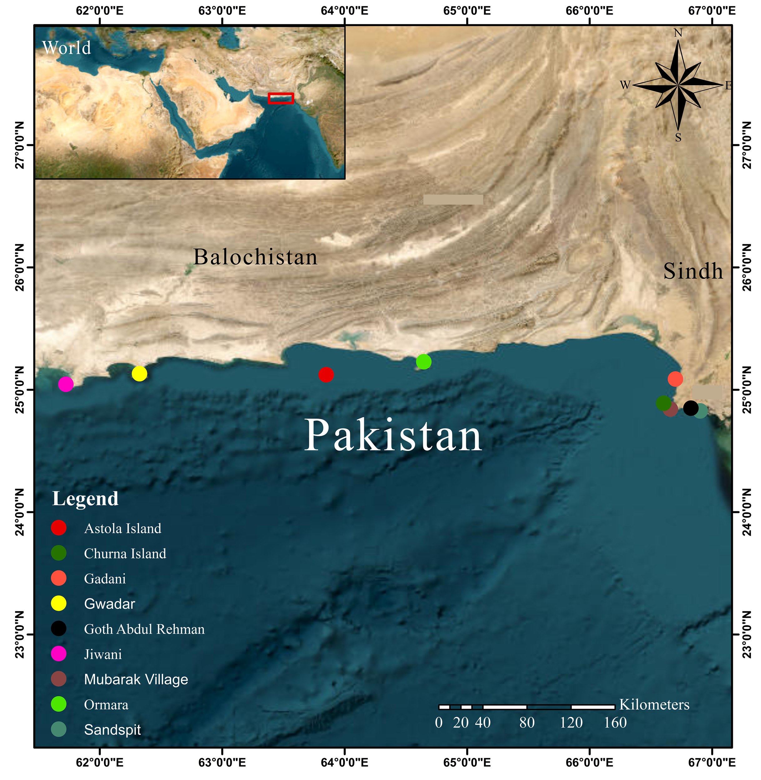 The coral reef distribution map of Pakistan.