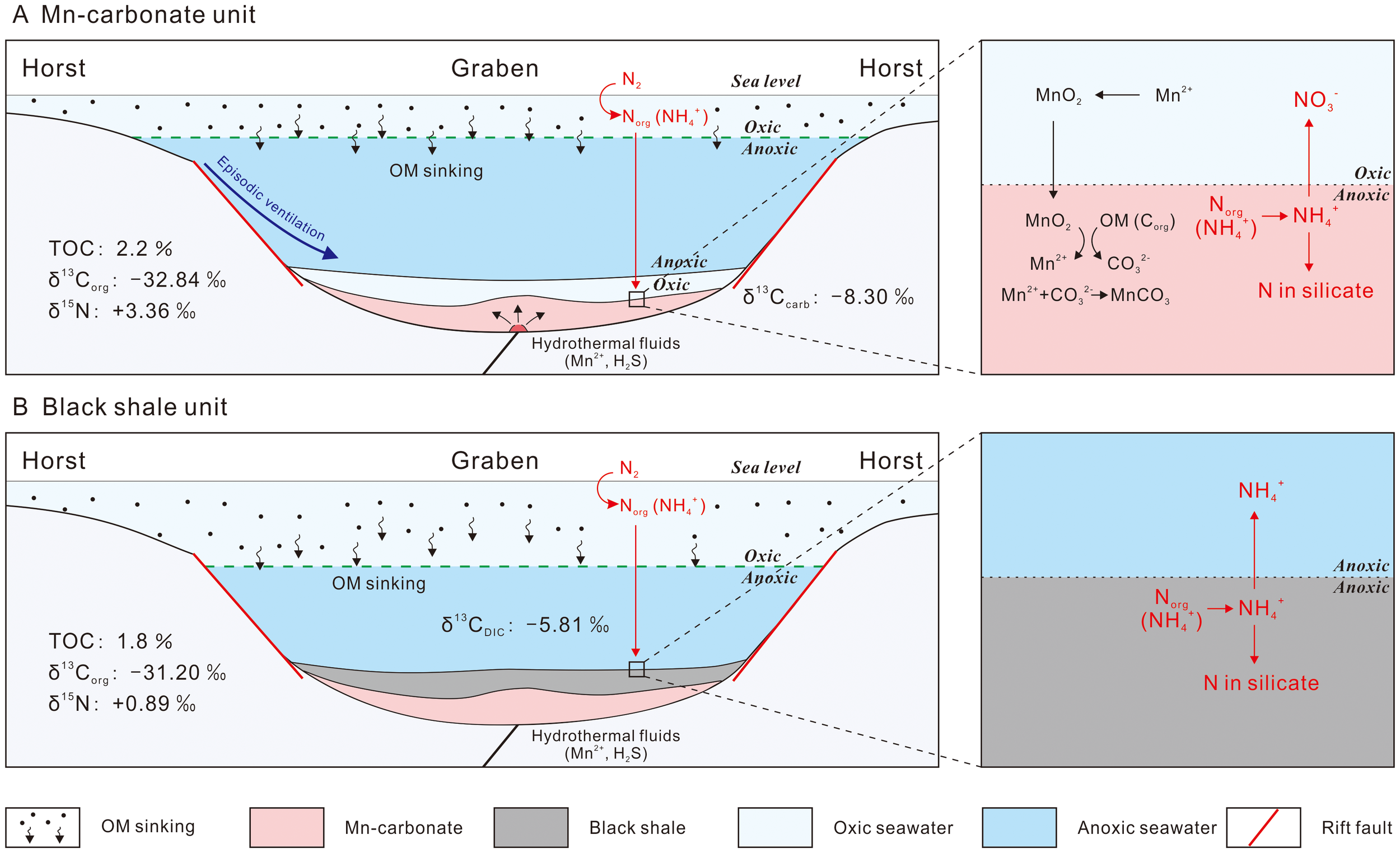 Mn-carbonate, black shale, nitrogen isotope, carbon isotope, negative carbon isotope excursions, metallogenesis