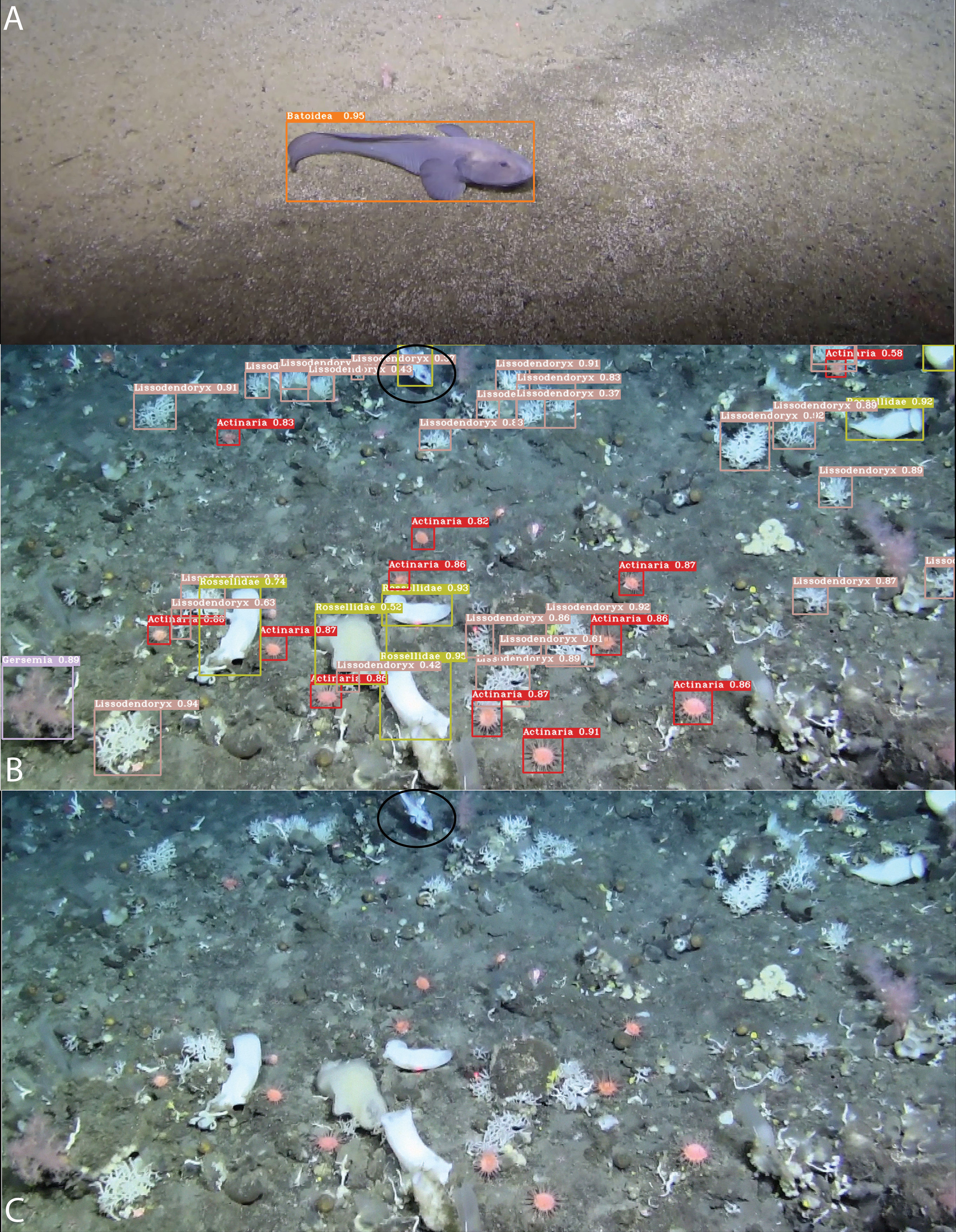 Mining Operations: As deep-sea mining becomes increasingly viable, particularly with recent proposals from the Norwegian government to open parts of its Exclusive Economic Zone (EEZ) for mining operations (https://www.regjeringen.no/no/aktuelt/horing-av-forste-konsesjonsrunde-for-havbunnsmineraler/id3047008/) and the ongoing interest in mining polymetallic nodules in the Clarion-Clipperton Zone (CCZ) (Gollner et al., 2022), object detection models can help monitor biodiversity as well as community and abundance changes in these areas. By identifying sensitive habitats and taxa before mining activities commence, stakeholders can make informed decisions that minimize ecological impact.