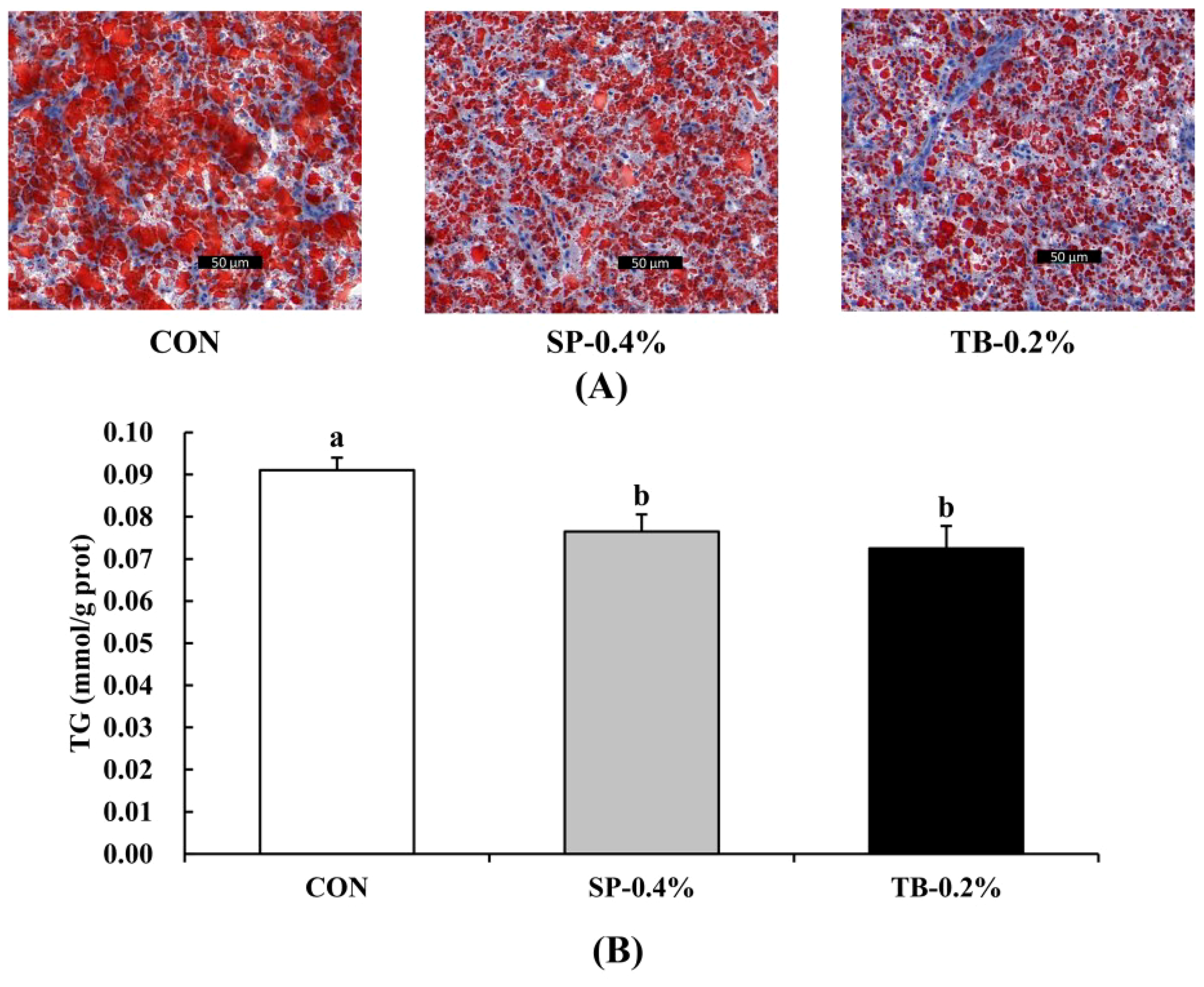3.4 SP and TB supplementation on oil red O staining and TG levels