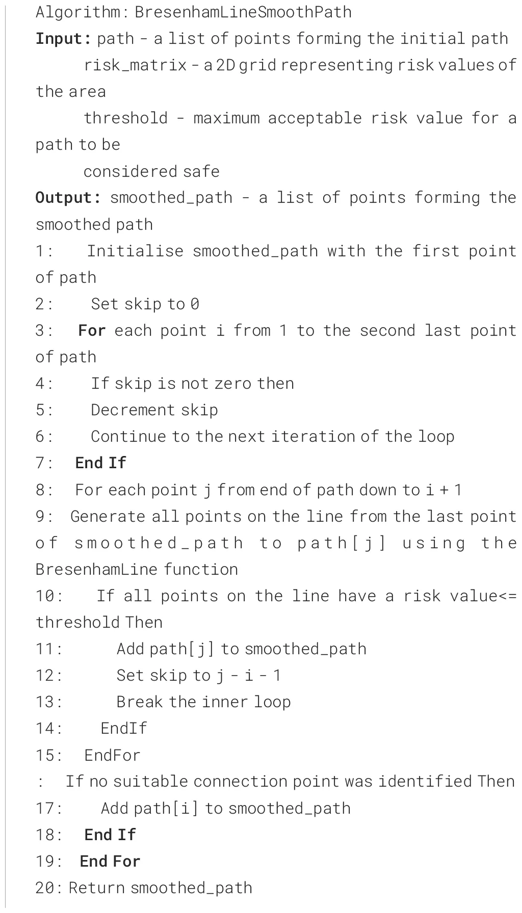 Algorithm 1 Bresenham-based path smoothing pseudocode.
