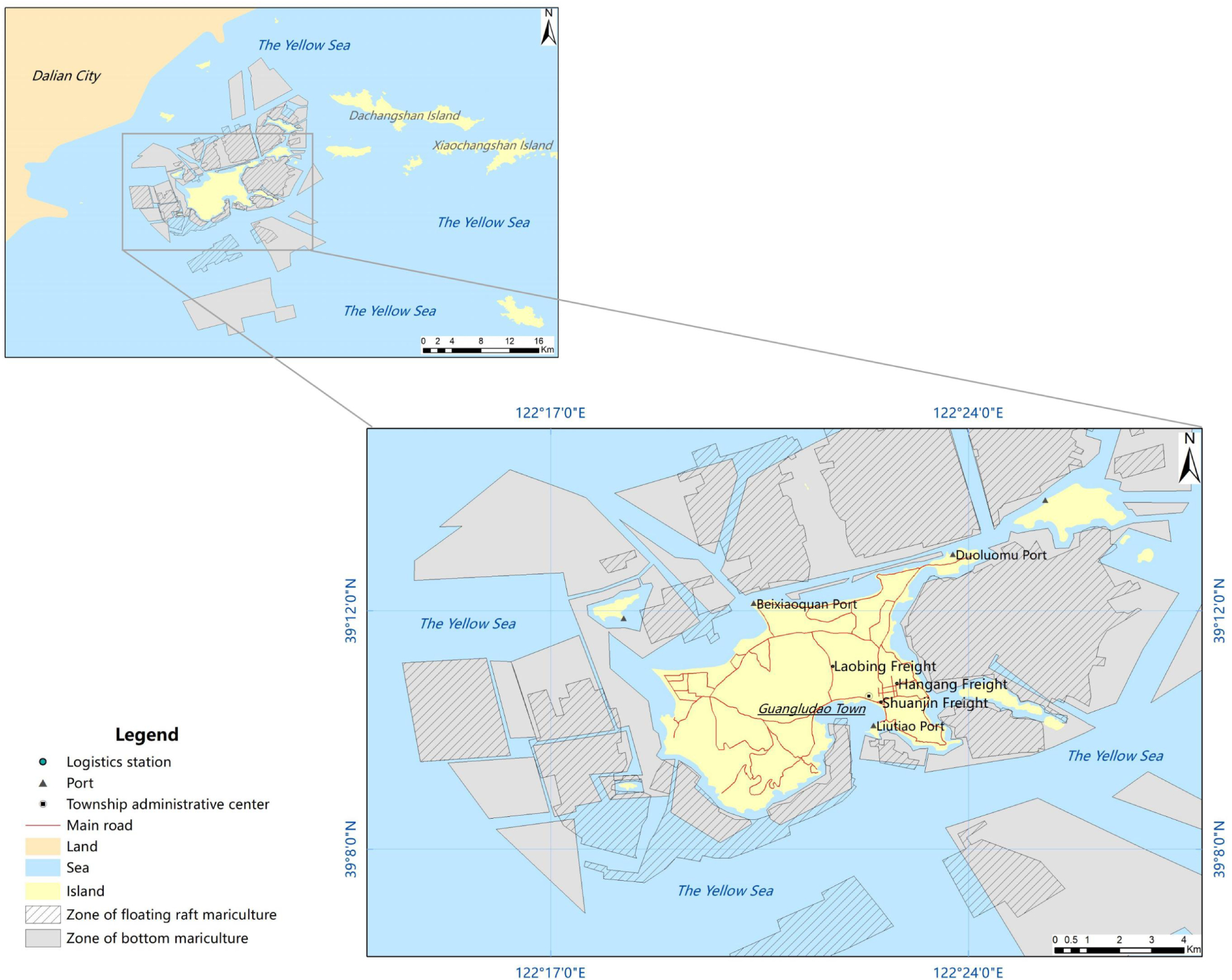 Utilizing marine space as a resource for mariculture also necessitates the development of supporting infrastructure and the training of mariculture labor for its production and reproduction. In practice, the government of Guangludao Town invested in the construction of Liutiao Port and Duoluomu Port, while the Dalian Port Group invested in the construction of Beixiaoquan Port. The town government is also responsible for constructing and maintaining the island’s main roads and side roads. Additionally, enterprises and individual residents have invested in constructing cold storage facilities and cargo terminals, such as Shuanjin Freight and Hangang Freight. These facilities link Guanglu Island’s fishery production activities to a more expansive geographical space, facilitating the capitalization of marine space and improving its efficiency.