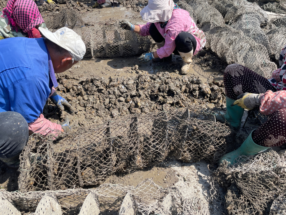 Empty the cage and separate the seedlings of oysters (Photo source: Shoot by the authors).