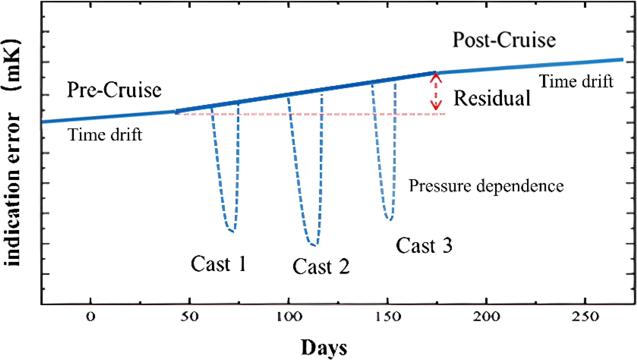 Schematic diagram of the in-situ drifts of the CTD device. and its pre- and post-deployment calibration.