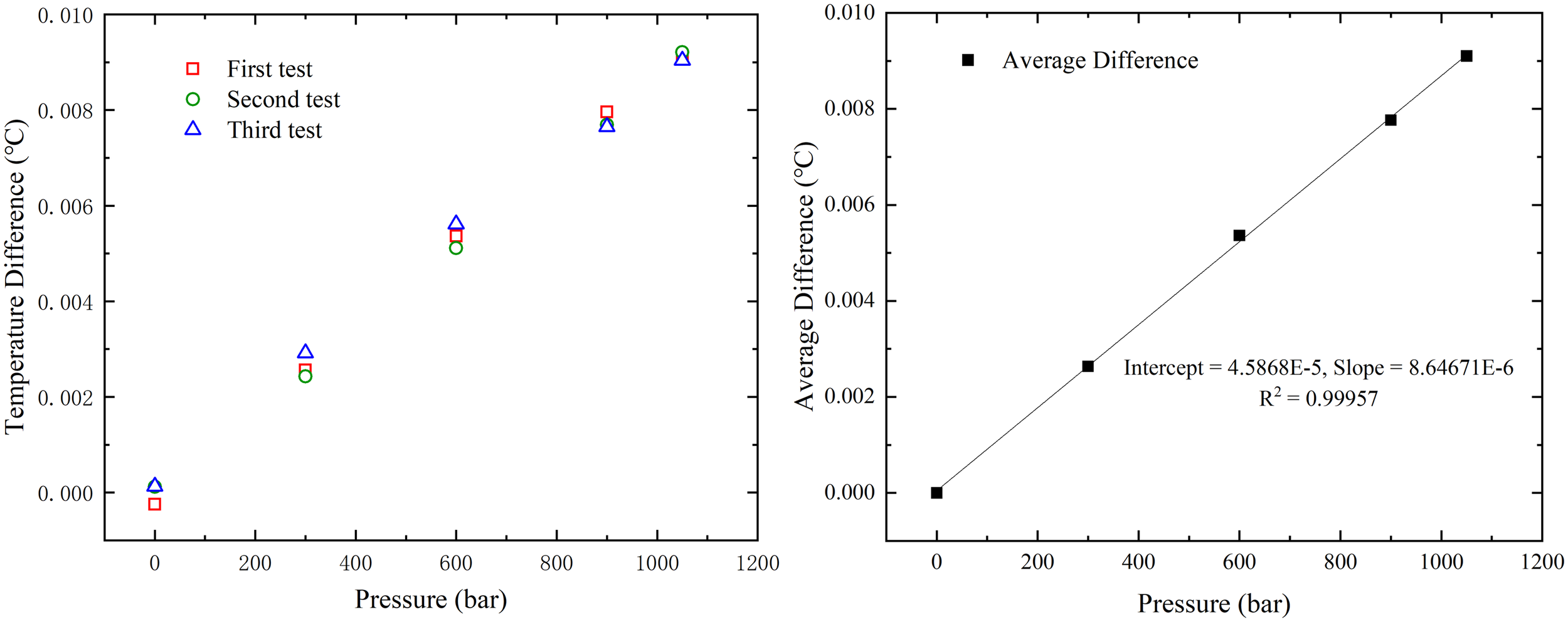 By substituting the real-time measured value into Equation 4, the corrected temperature reading can be obtained. This calibration effectively compensates for the pressure-induced error, improving the accuracy and reliability of temperature measurements.
