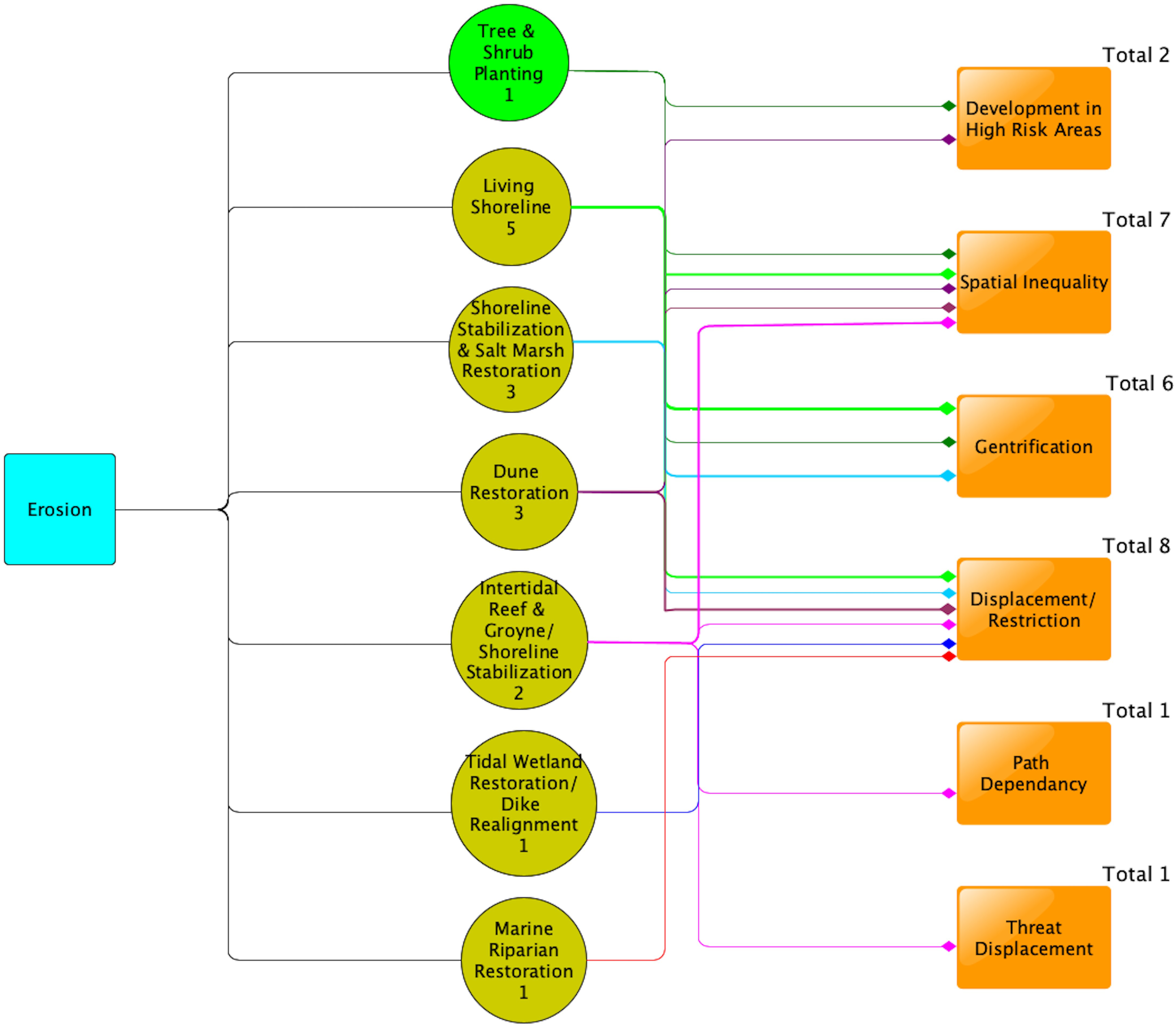 | Restoration | Living Shoreline (5) | Flooding, Erosion | Displacement, gentrification, spatial inequality |