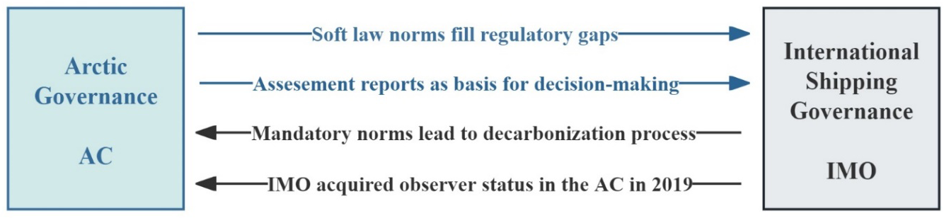 In the case of Arctic shipping decarbonization, the interaction between the IMO and the Arctic Council closely mirrors a “nested regime” interaction, where specific arrangements are embedded within a broader institutional framework. This dynamic is particularly marked by the coexistence of hard law (IMO regulations) and soft law (Arctic Council initiatives). The IMO, as the global regulator of international shipping, has led the charge in shipping decarbonization, including initiatives specific to Arctic shipping. However, the Polar Code, while an important step, has yet to fully address the urgent and comprehensive decarbonization needs of Arctic shipping.