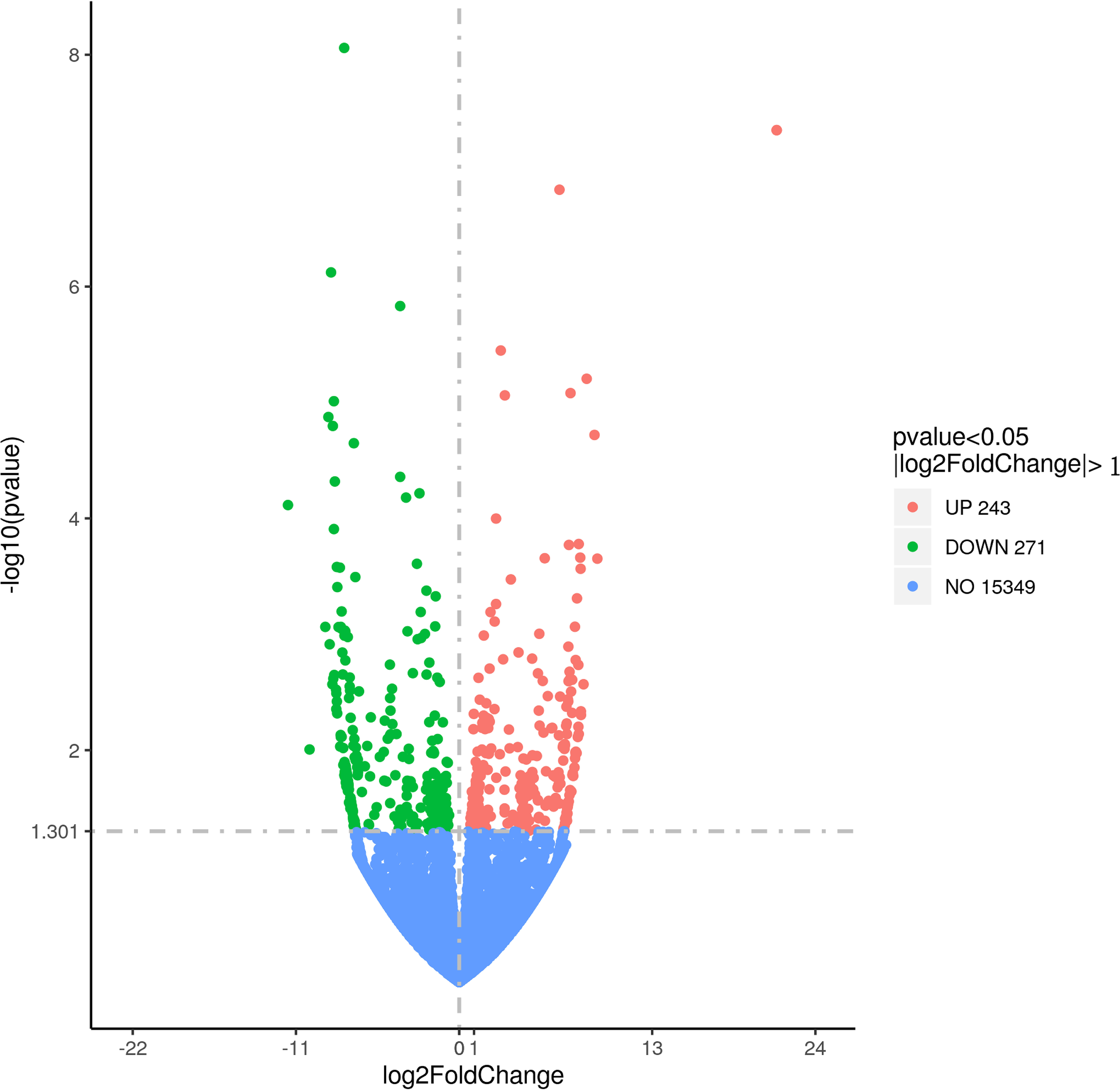Volcano plot of the differentially expressed genes in M. yessoensis in response to predation by A. amurensis.