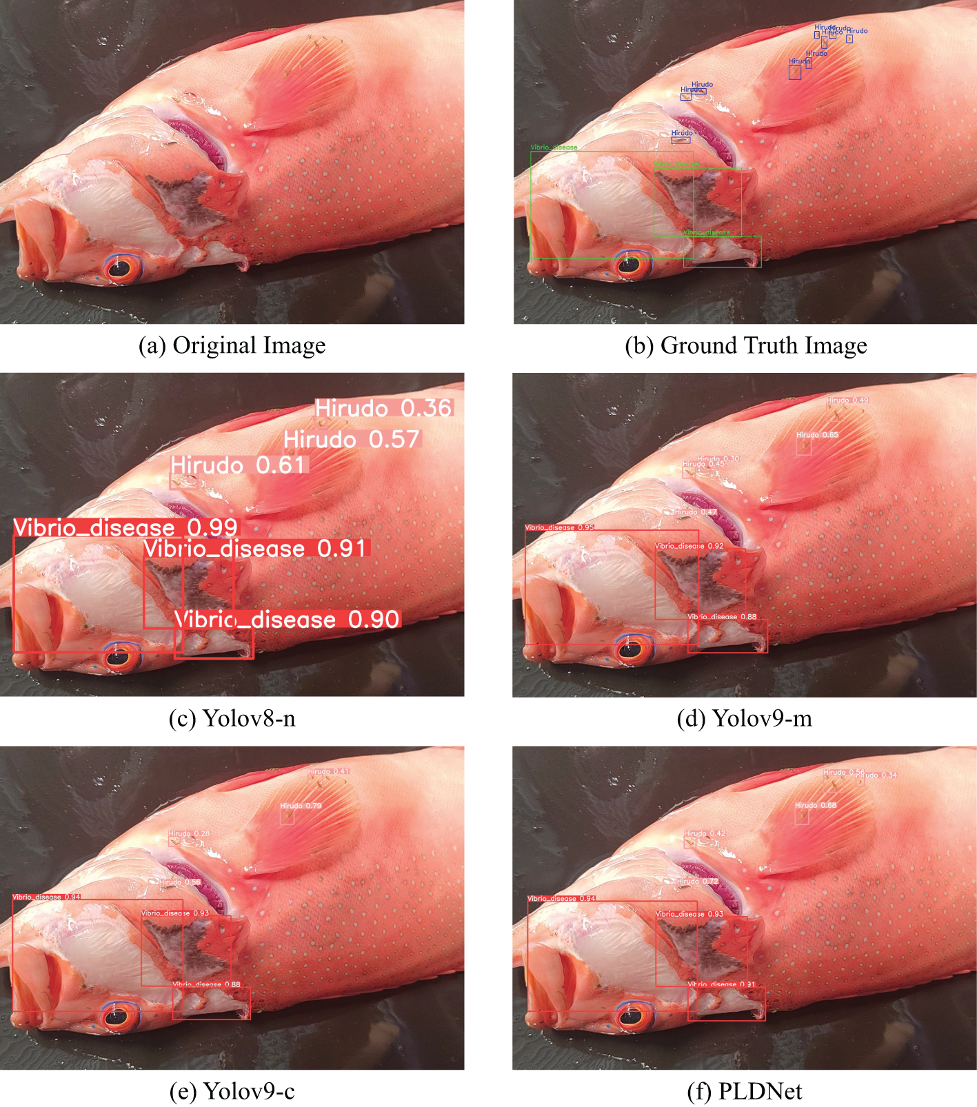 Despite these advancements, current detection methods face significant limitations, especially regarding their suitability for real-time, in-field diagnostics. The reliance on specialized equipment and reagents often makes these methods impractical for immediate, on-site use, leading to delays in treatment and management Defoirdt et al. (2011). These challenges underscore the need for innovative diagnostic solutions that provide rapid, accurate, and user-friendly detection of Vibrio diseases in aquaculture. PLDNet addresses these issues by leveraging cutting-edge computer vision techniques to enable real-time detection at the point of care.