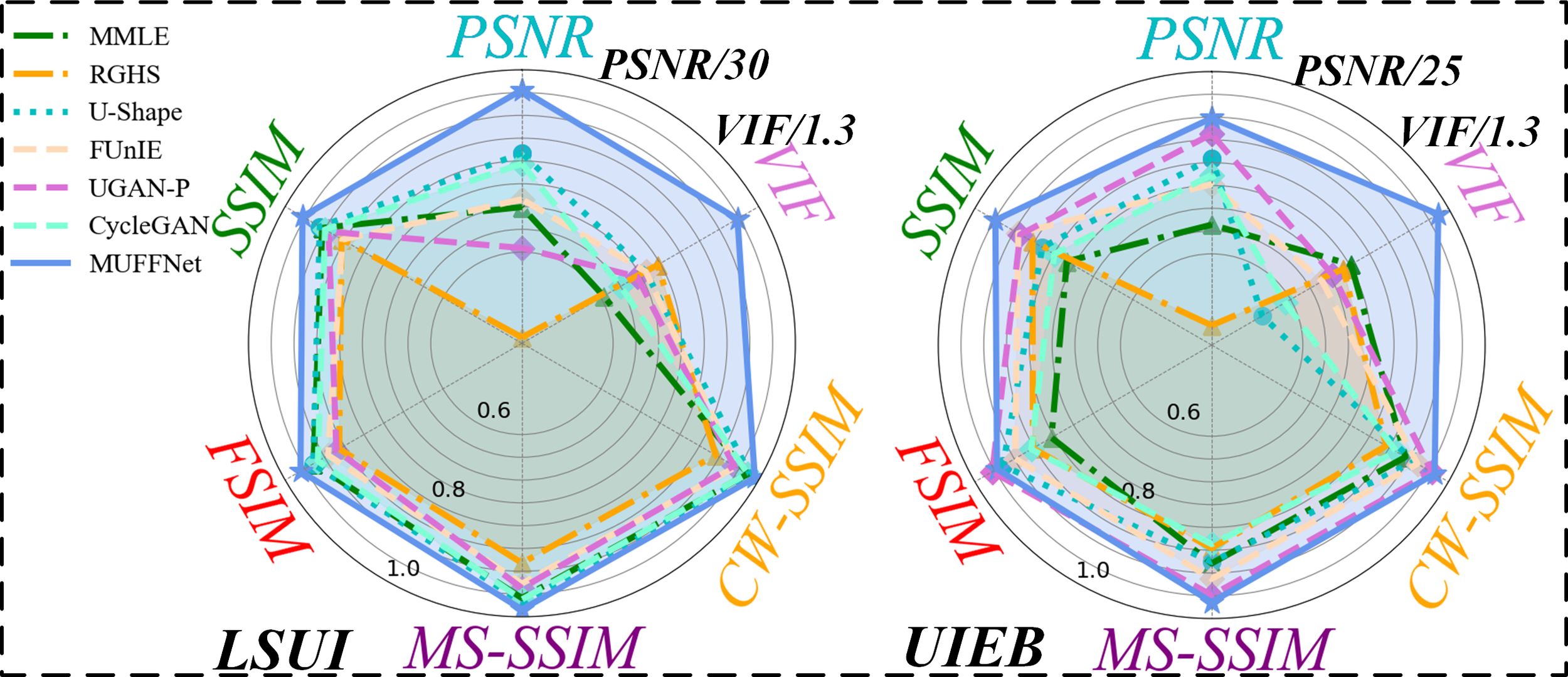 Experimental results demonstrate that MUFFNet outperforms existing state-of-the-art models while consuming fewer computational resources and aligning enhanced images more closely with human visual perception.