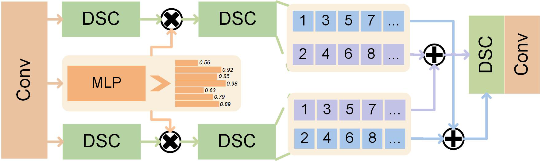 where is Depthwise Separable Convolution (Howard et al., 2017). is Fourier transform (FFT). is inputted feature. Subsequently, the frequency-domain-based convolution attention is calculated.