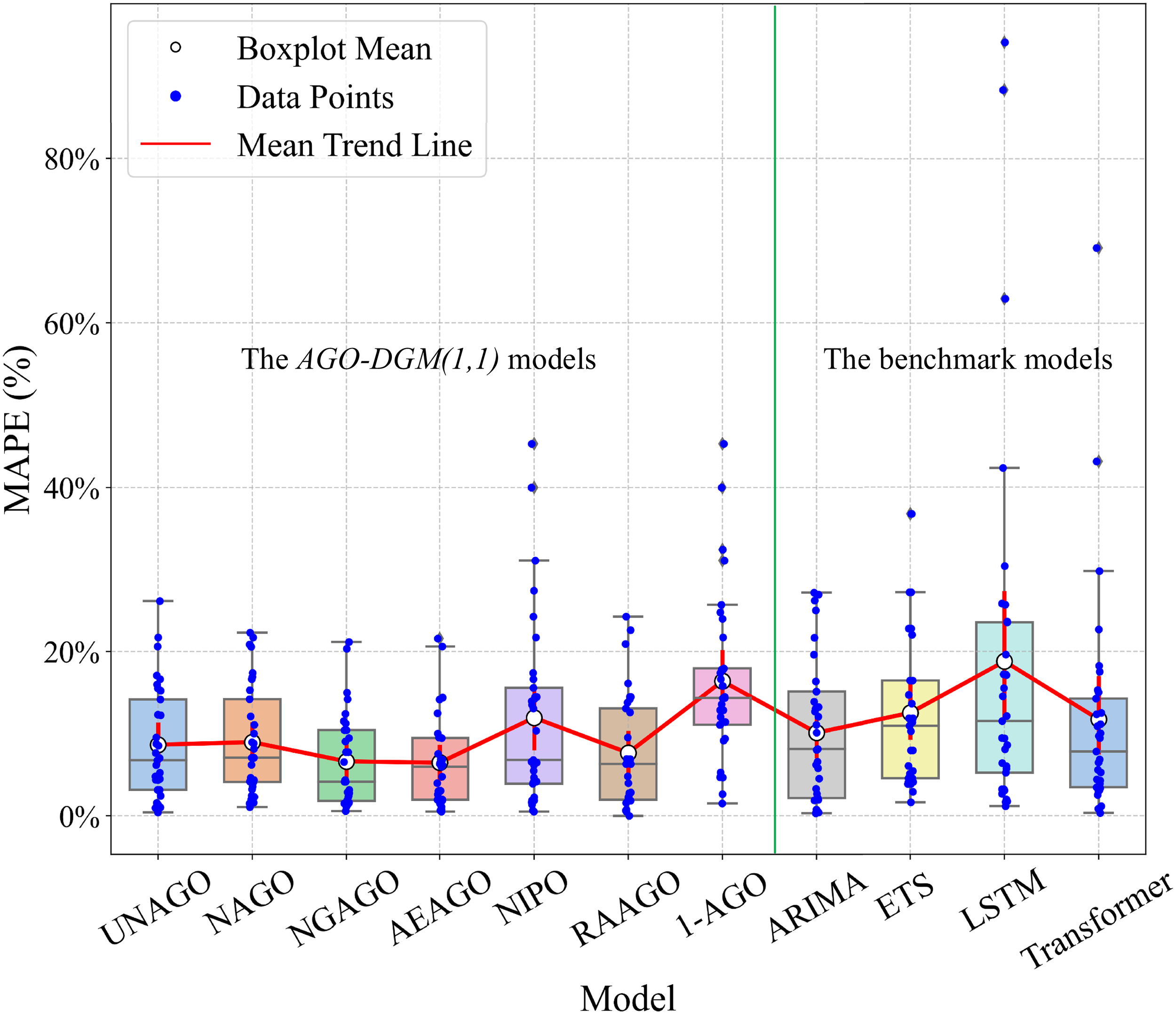 Therefore, after obtaining the model parameters from the training set, we construct the forecasting models under different AGO configurations for the GOP data. We then compare their forecasting errors during the prediction period, allowing us to select the AGO that yields the lowest out-of-sample error. This process enables us to theoretically and empirically identify the best-matching model for each province. The rationale behind this approach lies in that it serves as a benchmark for evaluating competing AGO variants after the model has been fully trained. Since each AGO transformation defines a distinct model structure. This allows for a data-driven, yet methodologically sound, selection of the AGO method that best fits the underlying data characteristics of each province.