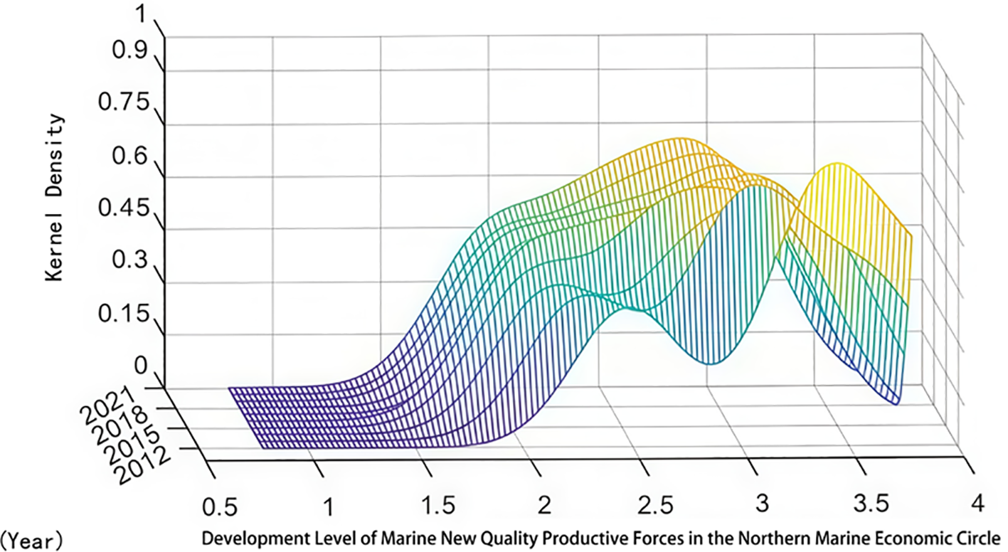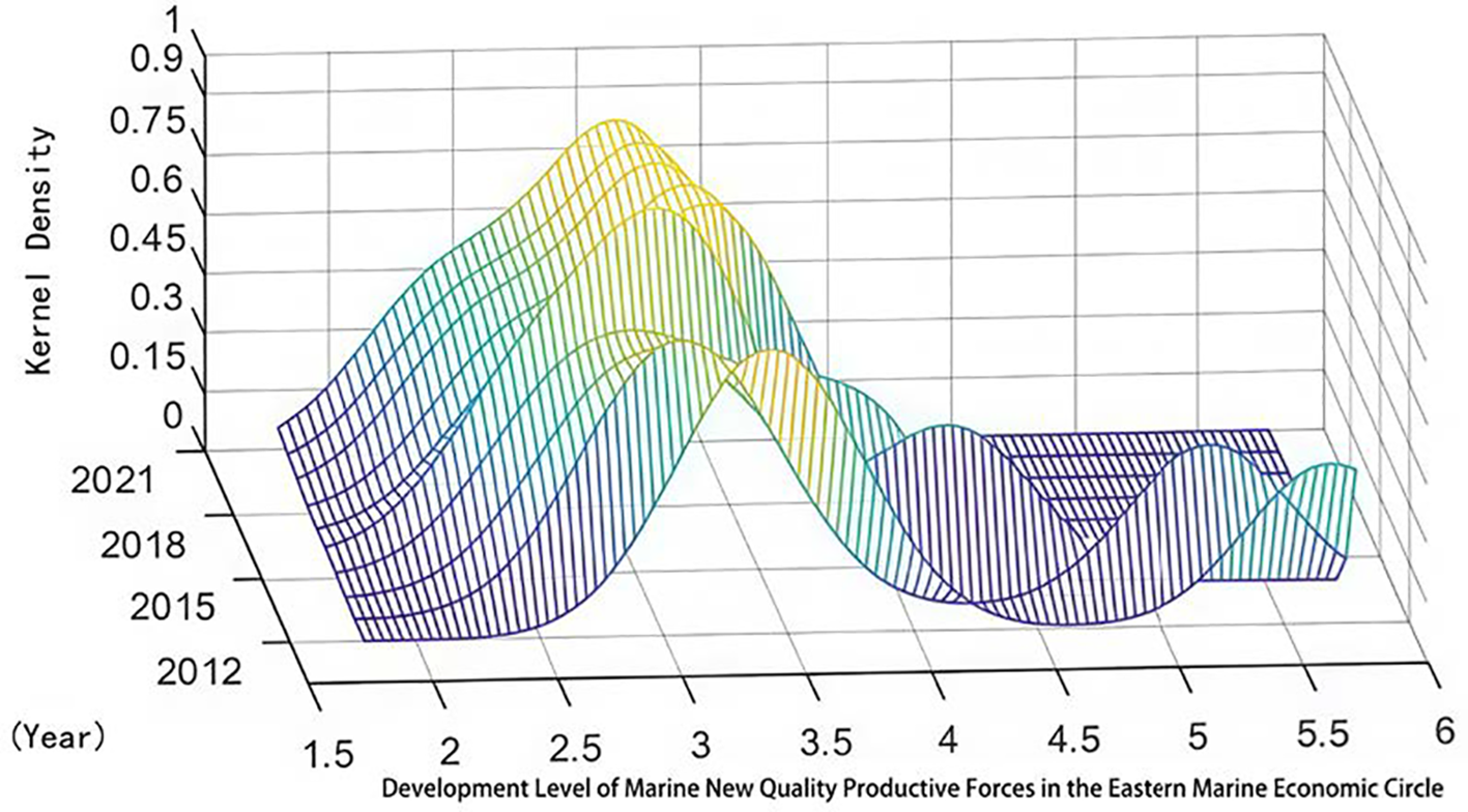 Calculation results of China’s Marine new-quality productivity level from 2012 to 2021.