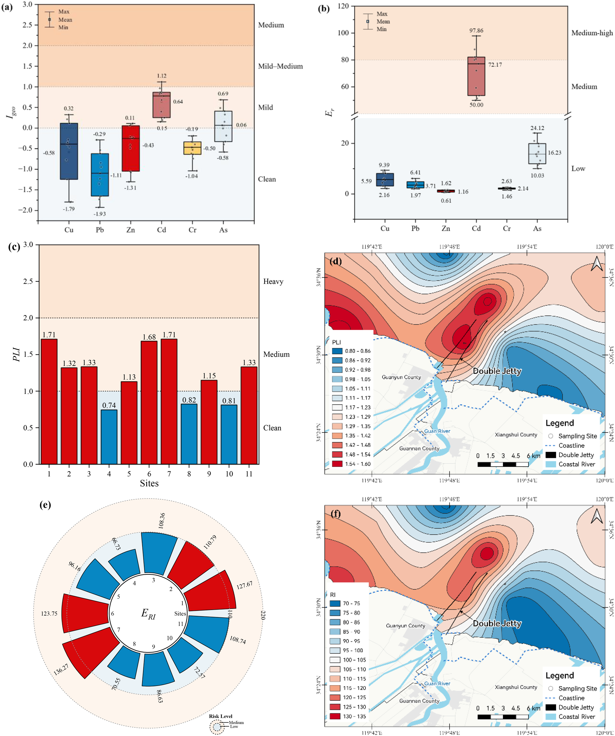 Criteria used the geo-accumulation index (Igeo), pollution load index (PLI), element-specific ecological risk (Er), and comprehensive ecological risk index (ERI).