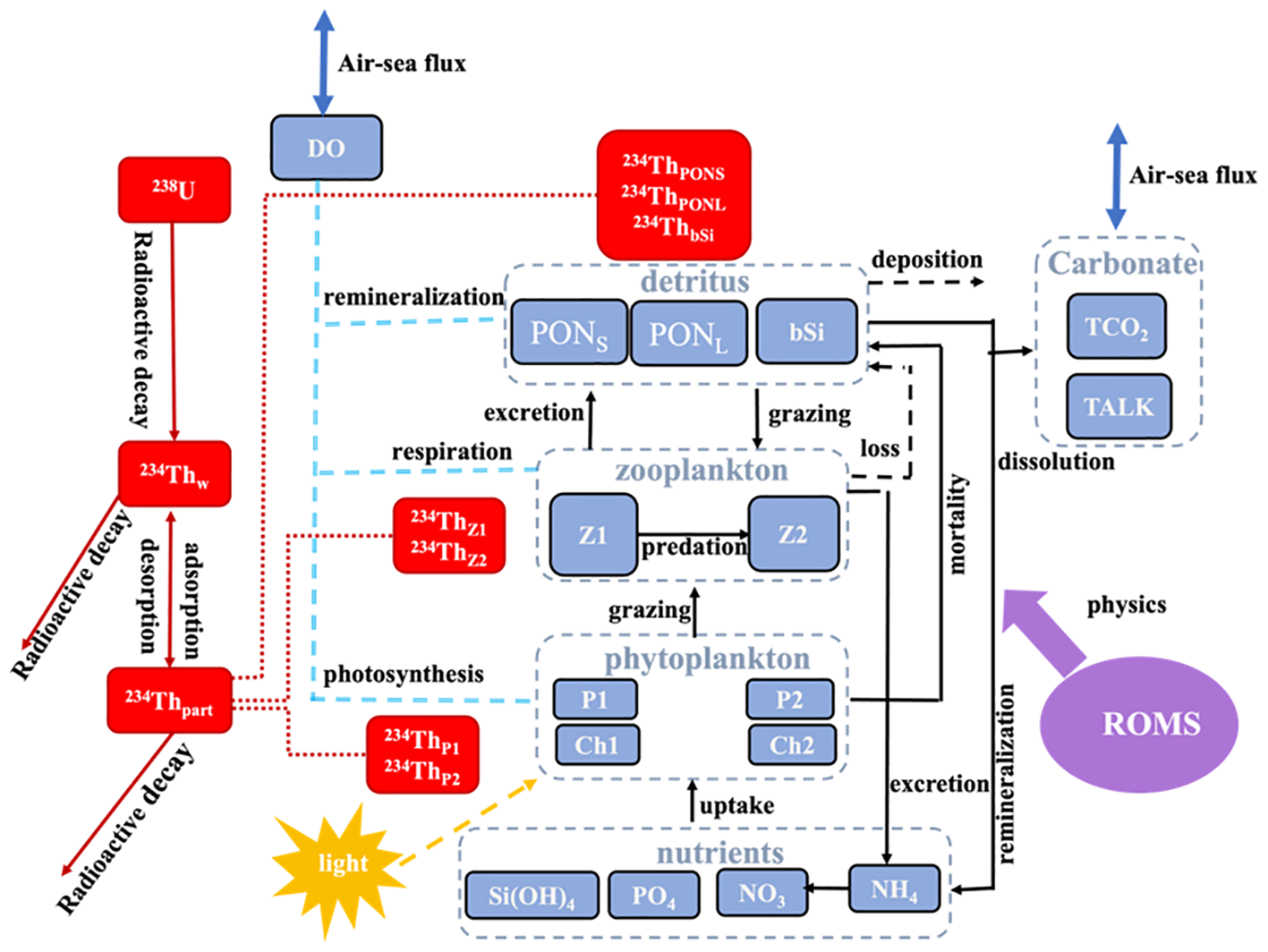 Schematic diagram of the CoSiNE-234Th model.