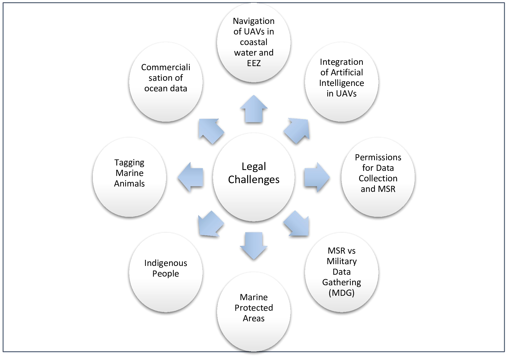 The subsections below detail the six key patterns that emerged from the interview responses, highlighting the legal challenges associated with the operation and navigation of AUVs, UAVs, data collection, security, environmental issues, animal tagging, and intellectual property rights.