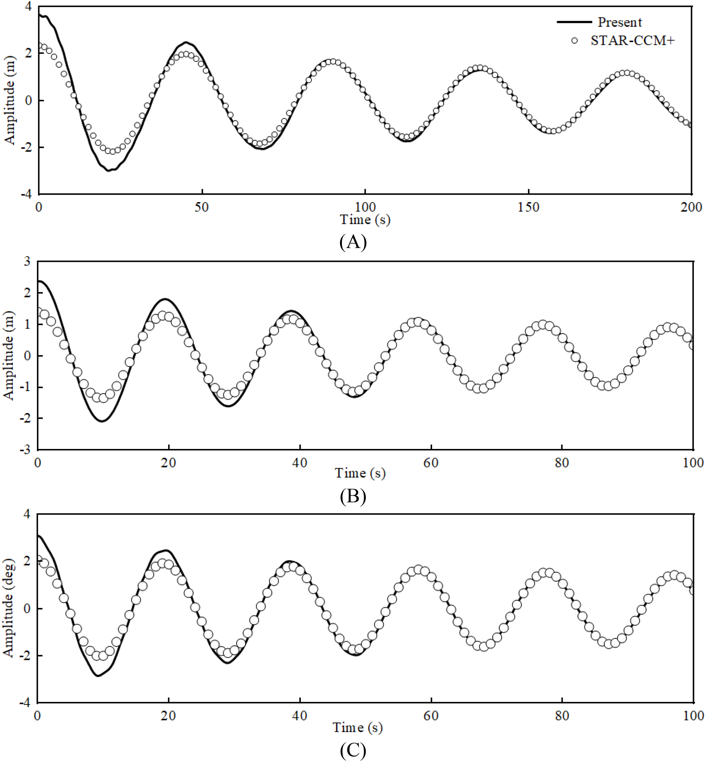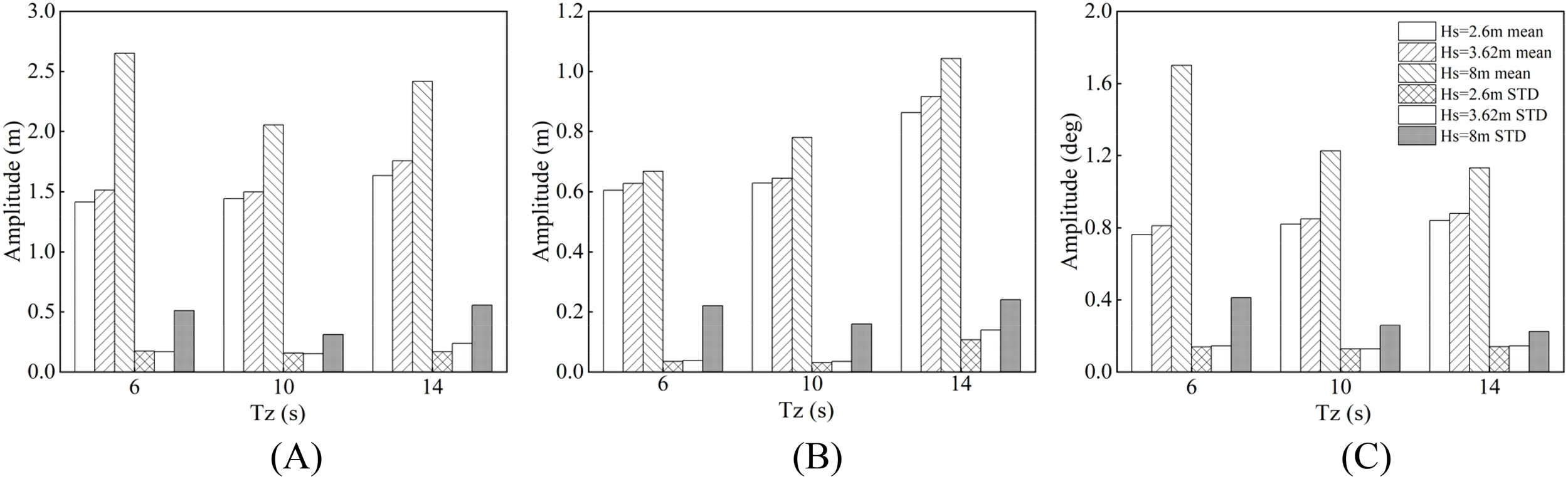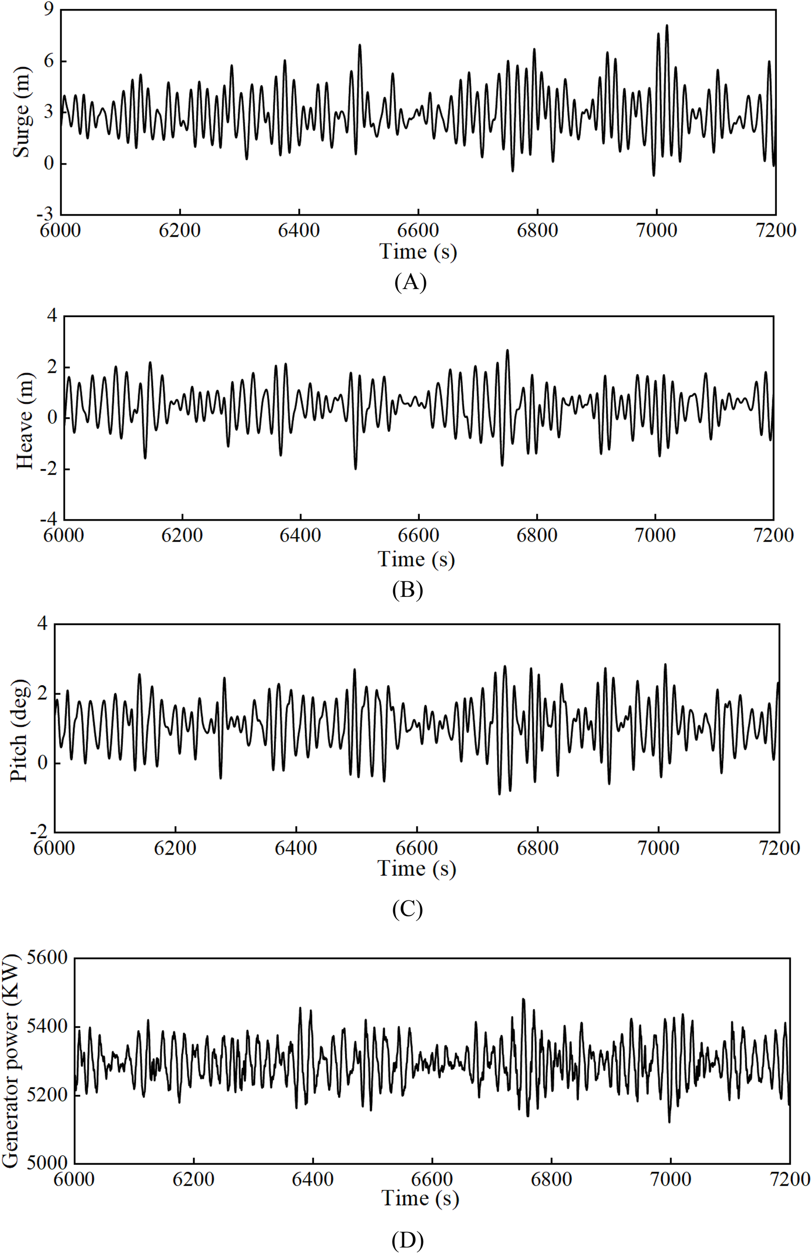The establishment of the Morison equation requires the following basic assumptions (Liu G, et al., 2020): (1) The motion parameters of the water particles must be calculated according to some wave theory and are not affected by the presence of the structure; (2) The parameters and must be determined based on existing experience or experiments; (3) The structure under force is rigid; (4) It is only applicable to structures with small surface friction. In this study, according to (Robertson et al., 2014), The drag coefficient for the floating foundation side column is 0.65, the drag coefficient for the central column is 0.61, the drag coefficient for the heave plate is 0.68, these drag coefficients are derived from an empirical formula based on the cylinder diameter.