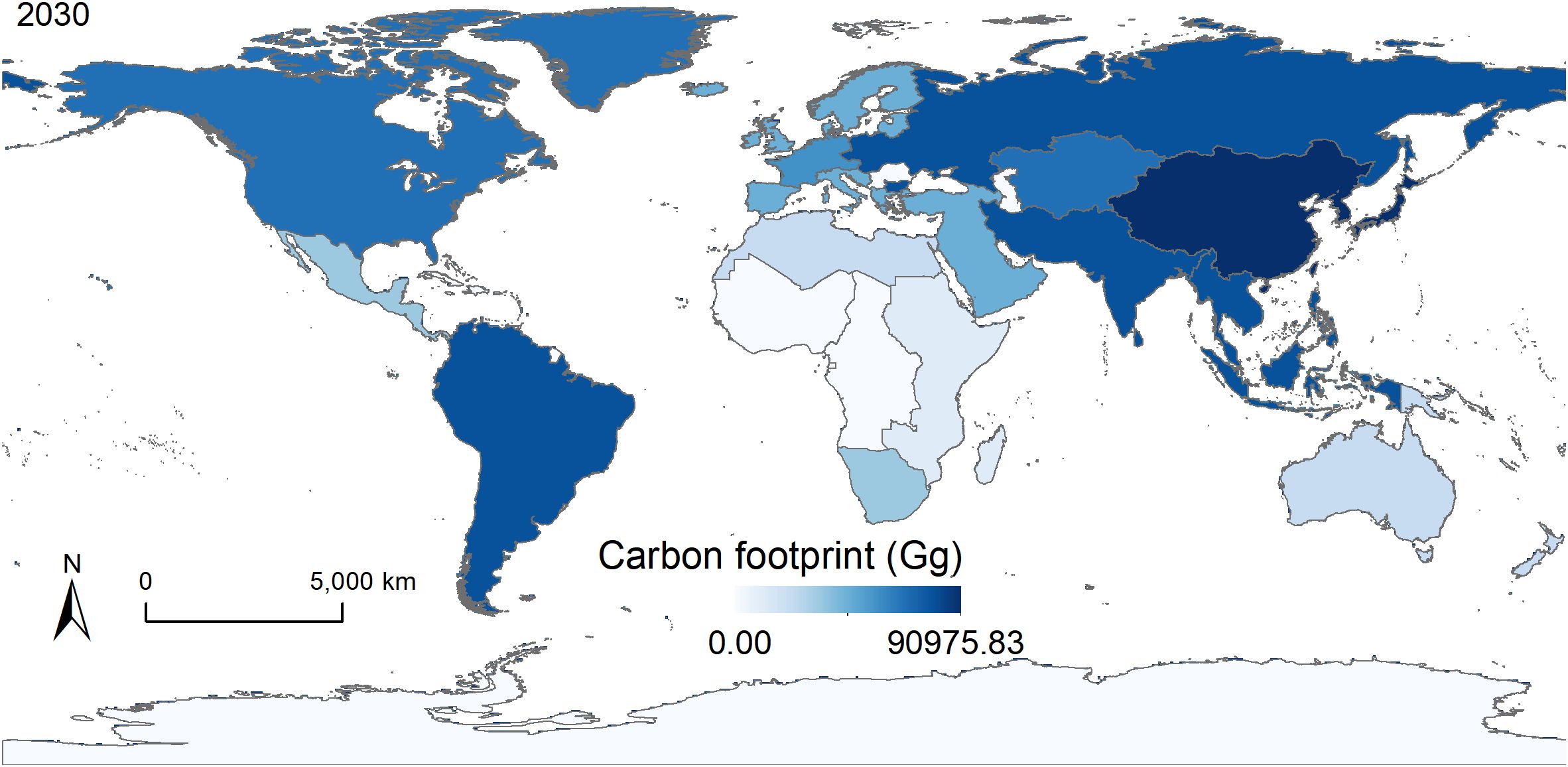 Western Asia reflects growing concentrations of trade-related emissions. Countries in South America are also becoming major suppliers in response to external demand, particularly from Europe and East Asia, thereby assuming a growing share of global CBA-designated emissions. These shifts highlight the complex and dynamic geography of carbon flows, in which consumption in one region often leads to increased production and associated emissions in another (Peters and Hertwich, 2008; Tukker et al., 2016).