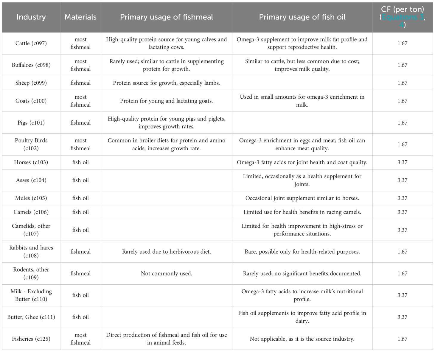 Table 1. Potential fisheries carbon footprint coefficients for fishmeal and fish oil utilization by various industry sectors in the FABIO dataset.