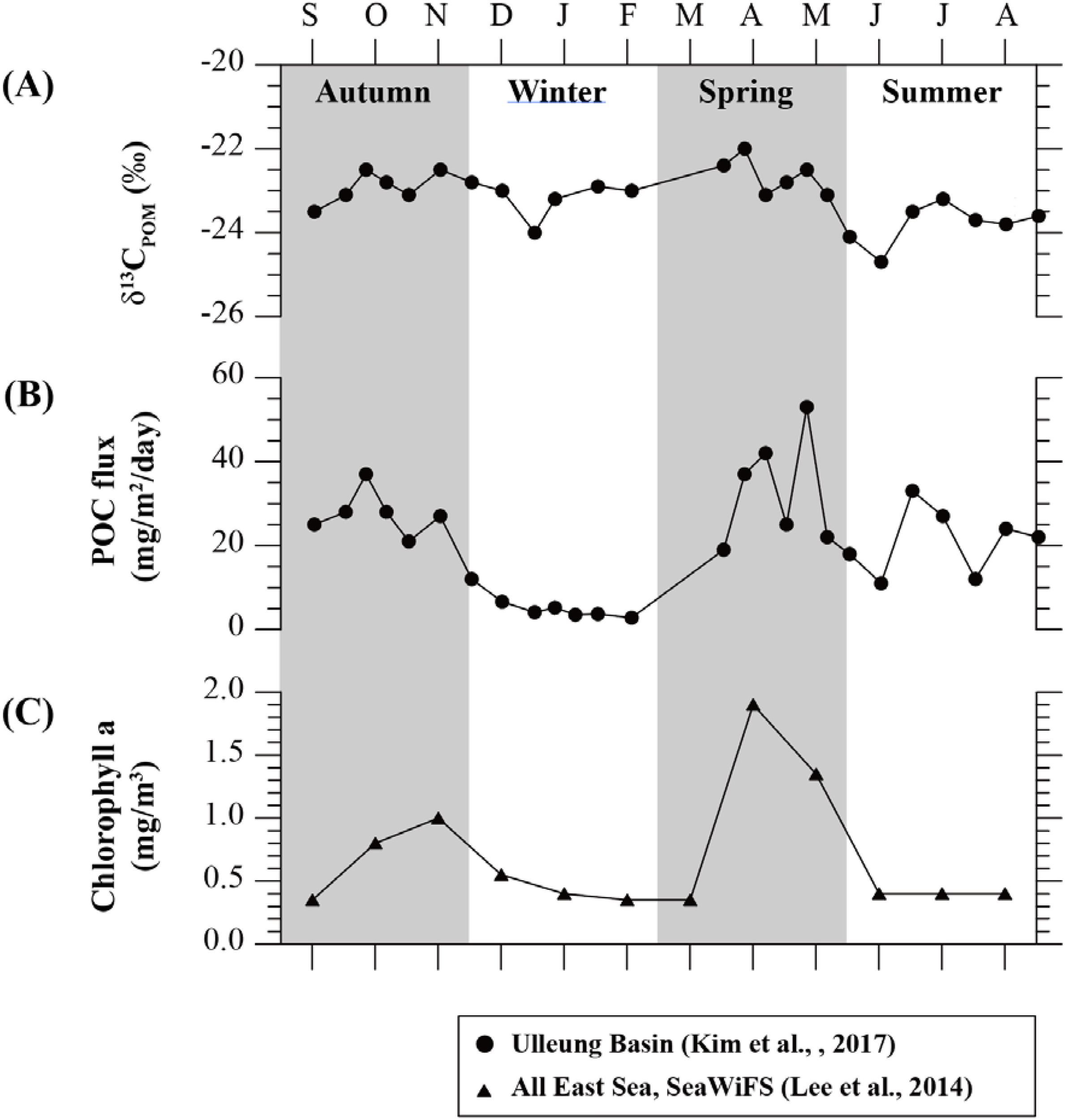 Kim M. Hwang J. Rho T. Lee T. Kang D. J. Chang K. I. et al . (2017). Biogeochemical properties of sinking particles in the southwestern part of the East Sea (Japan Sea). J. Marine System167, 33–42. doi: 10.1016/j.jmarsys.2016.11.001