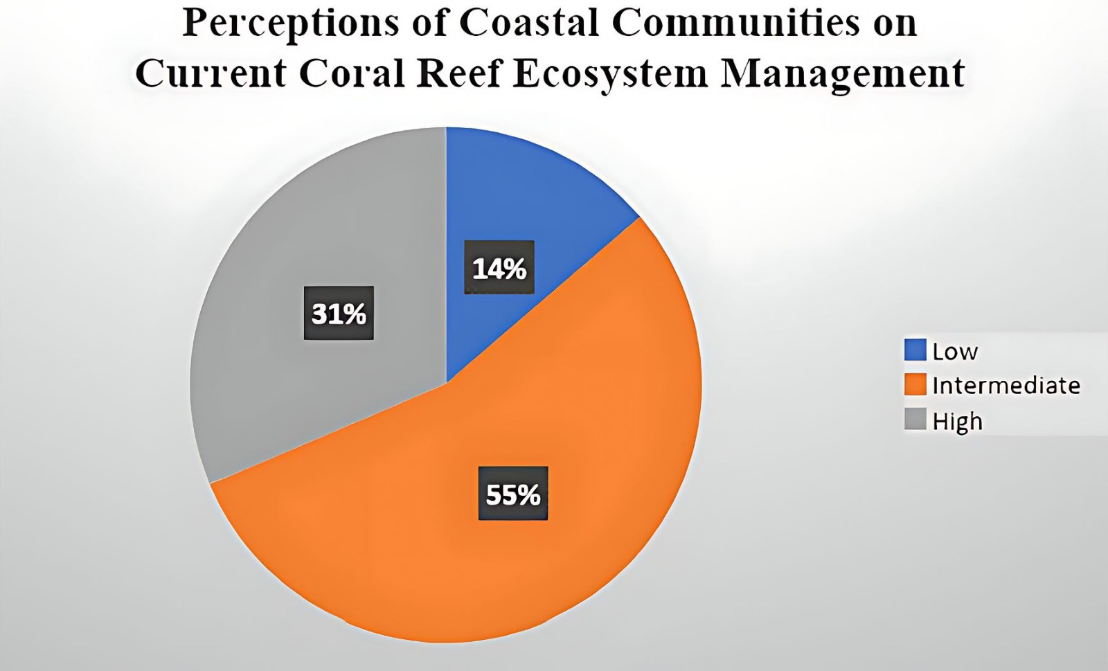 Community perception level was measured by gathering information related to the opinion of community and dive tour guides regarding the need for sustainable ecosystem management, an assessment of the condition of coral reef ecosystem in the past 3 years, the presence, and the effectiveness of management efforts.