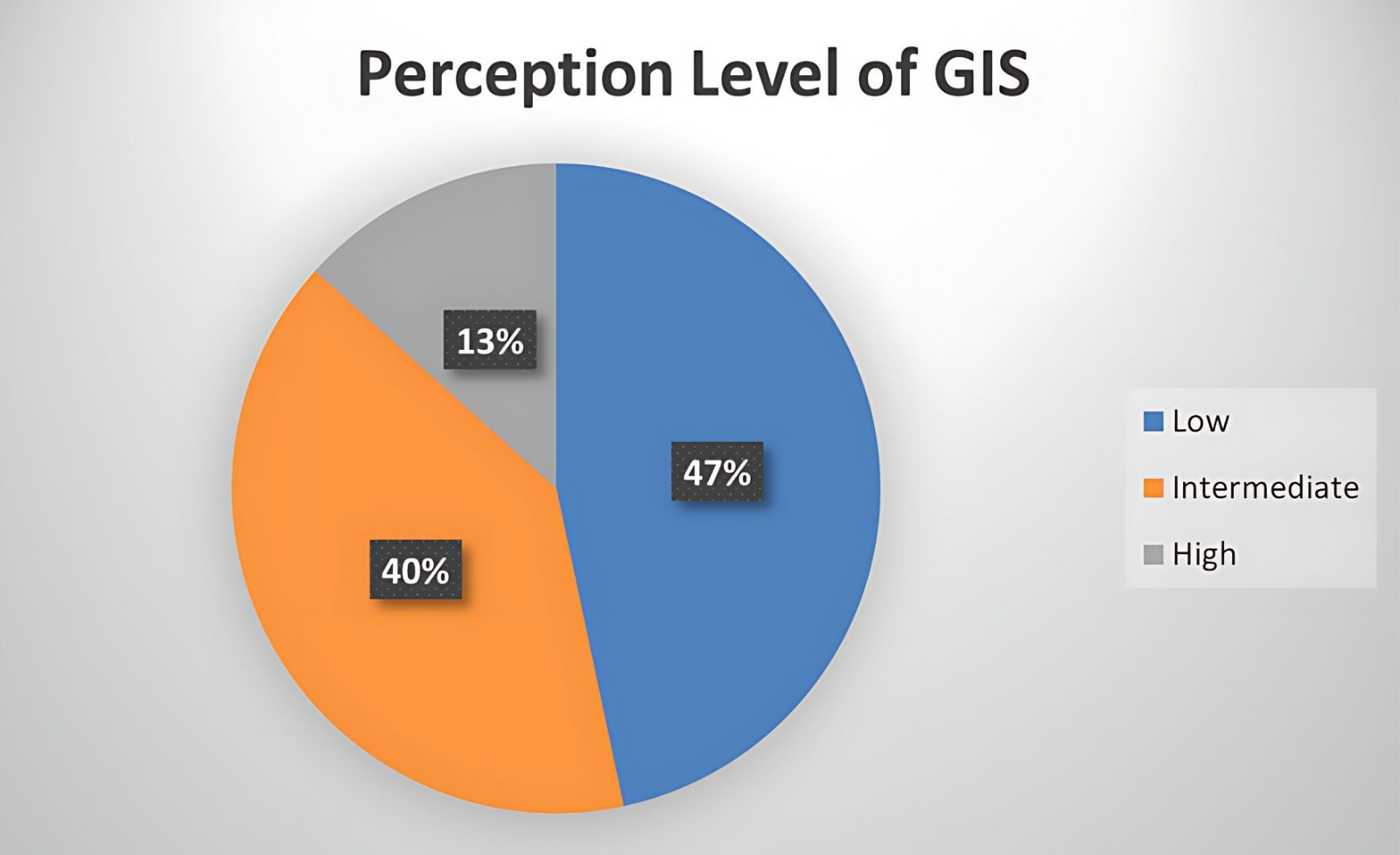 Based on the questionnaire distributed to communities, 53% of respondents had a general awareness of Geographic Information System (GIS) technology. The majority of this percentage also had a high level of education and had studied GIS at the university. A total of 67% of respondents believed that the technology could be used to assist in coral reef ecosystem management (Levine and Feinholz, 2015). However, they also emphasized the necessity of field checks to verify the processed data. All respondents were willing to learn the GIS application to aid in future coral reef ecosystem management. Based on the results, community perception of using the application was predominantly at low (47%) and medium (40%) levels, whereas only 13% had a high level, as shown in Figure 9. This showed that the majority of respondents were not familiar with the technology and its potential in monitoring the health of coral reef ecosystems.