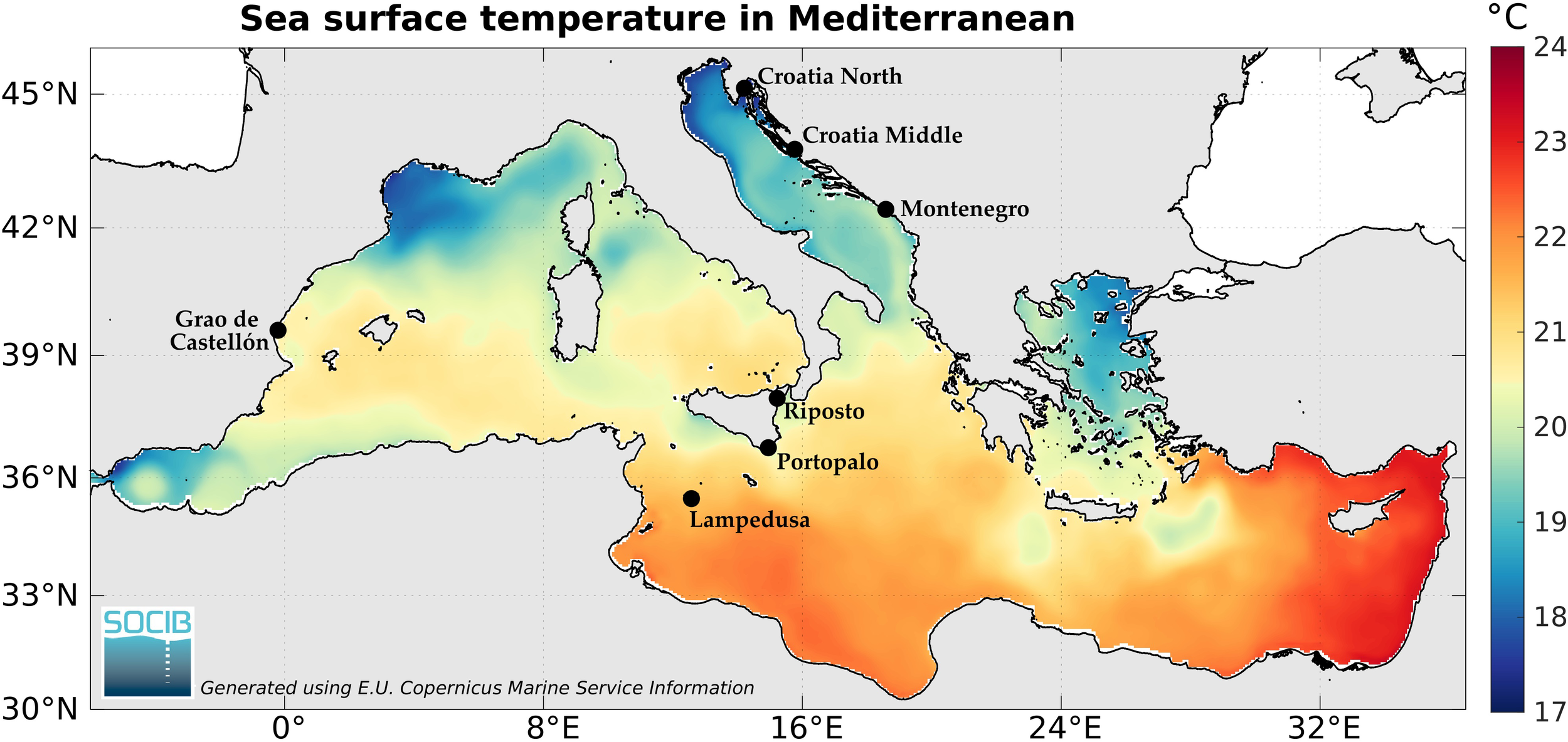 a First group (Lampedusa, Portopalo, Riposto), second group (Grao de Castellon), third group (Croatia North, Croatia Middle, Montenegro).