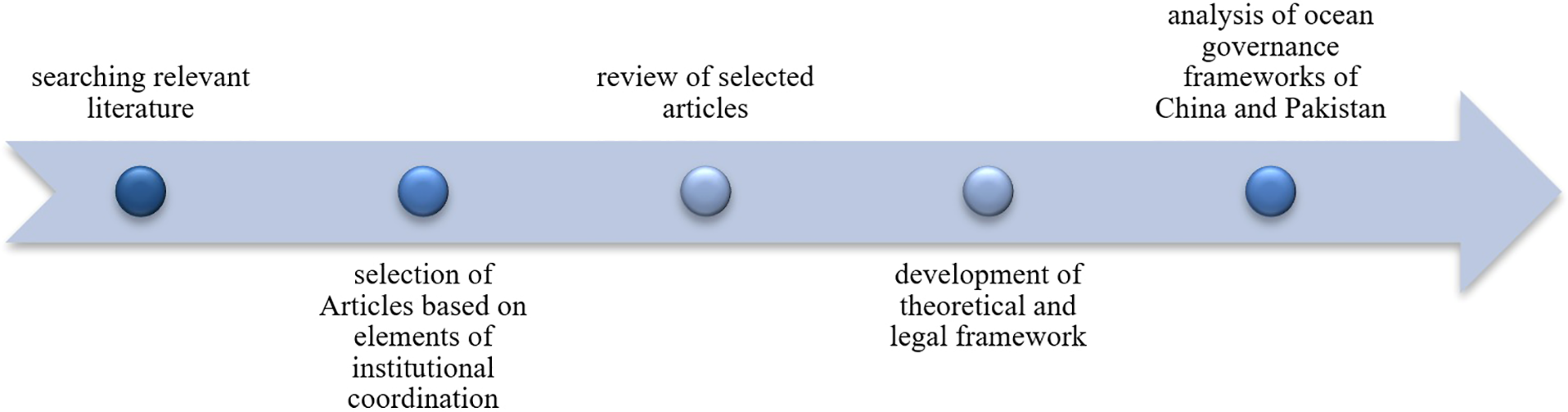 Based on this hypothesis, this research paper conducted a comparative analysis of the ocean governance framework of China and Pakistan to observe the institutional capacity of developing bilateralism in both States. The ocean governance frameworks of China and Pakistan are compared under international law with sound reasoning as to why effective implementation of the law of the sea (along with other international environmental instruments) is essential for vigorous ocean governance. This comparison followed a theoretical and legal framework under SDG 14 (as a novel and effective means of ocean governance) developed in the next section through a Comprehensive Review of International Law and Relevant Literature (CRILL – Methodology) (Butt, 2021; Butt et al., 2021b; Zulfiqar and Butt, 2021). Application of the CRILL methodology is significant for such comparative analysis because it provides a mechanism to thoroughly review the law and literature, including the suggestions for improvement.