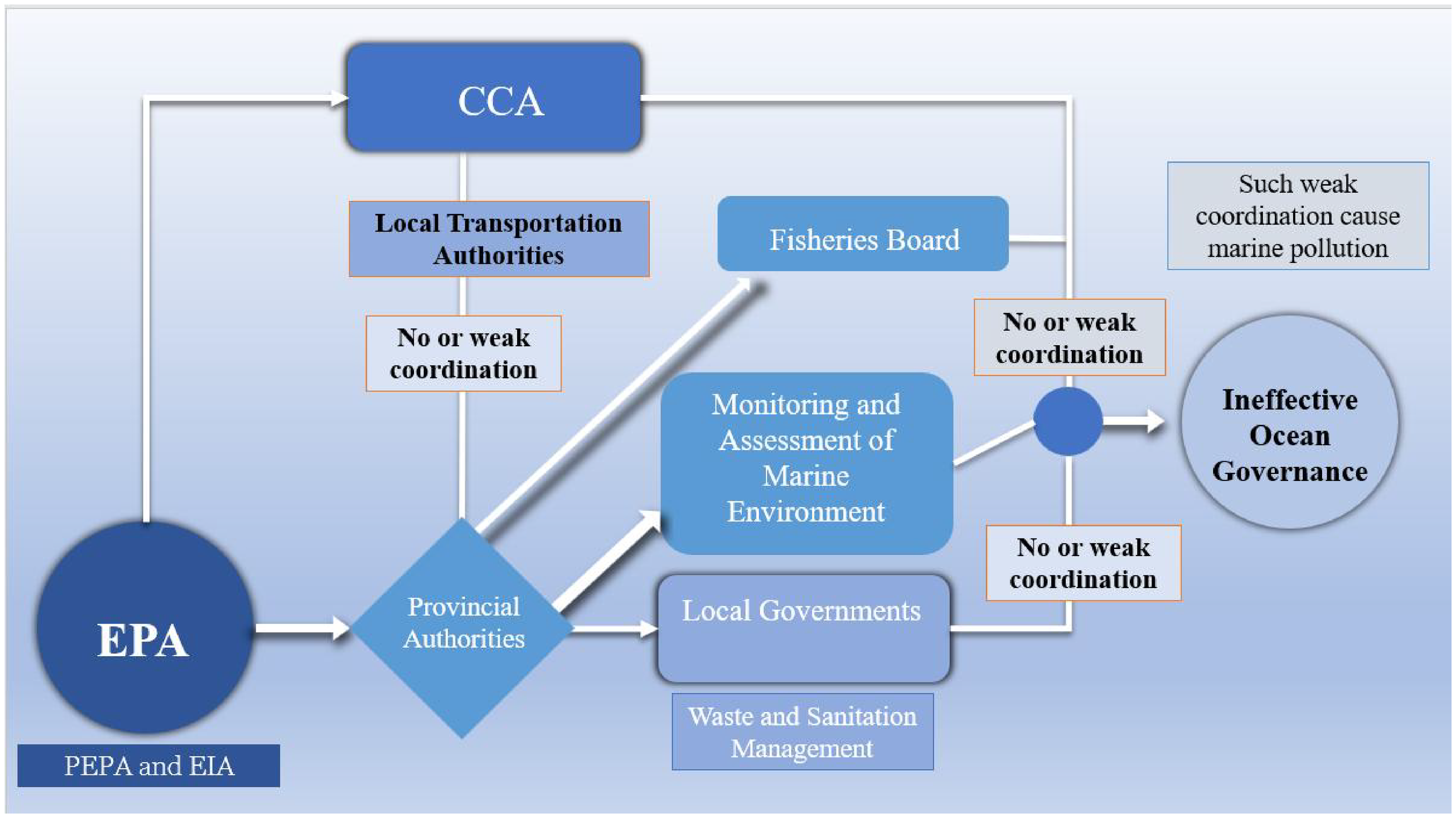 Review of extracted research articles, book chapters and policy papers envisaged elements of a theoretical framework (an institutional coordination framework) that assist authorities/institutions in ocean governance.