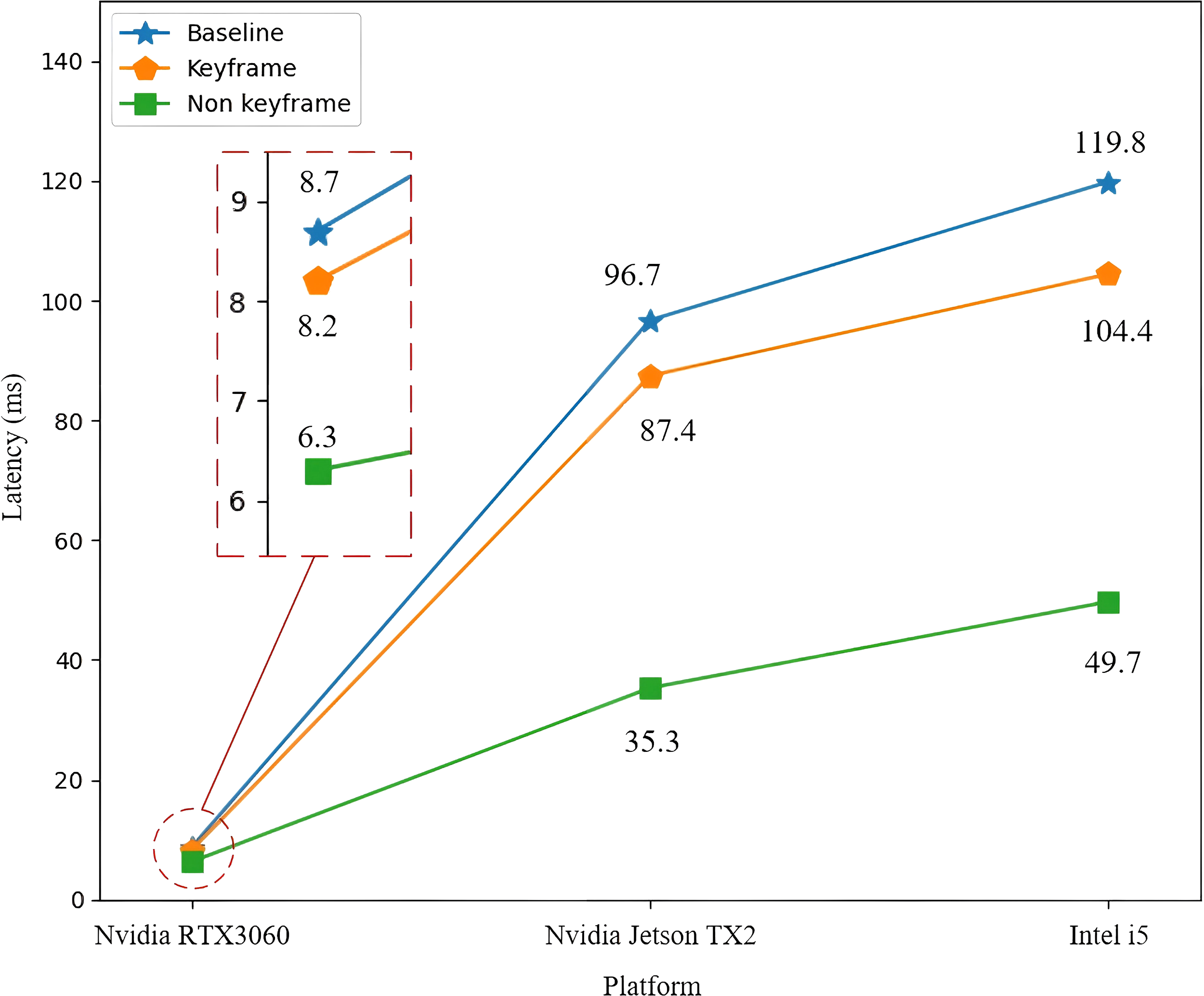 Implementation on Nvidia Jetson TX2 demonstrated significant performance improvements. (1) Processing latency reduced to 87.4 ms (keyframes) and 35.3 ms (non-keyframes)(2)Maintained competitive segmentation accuracy compared to conventional methods and achieved low latency.