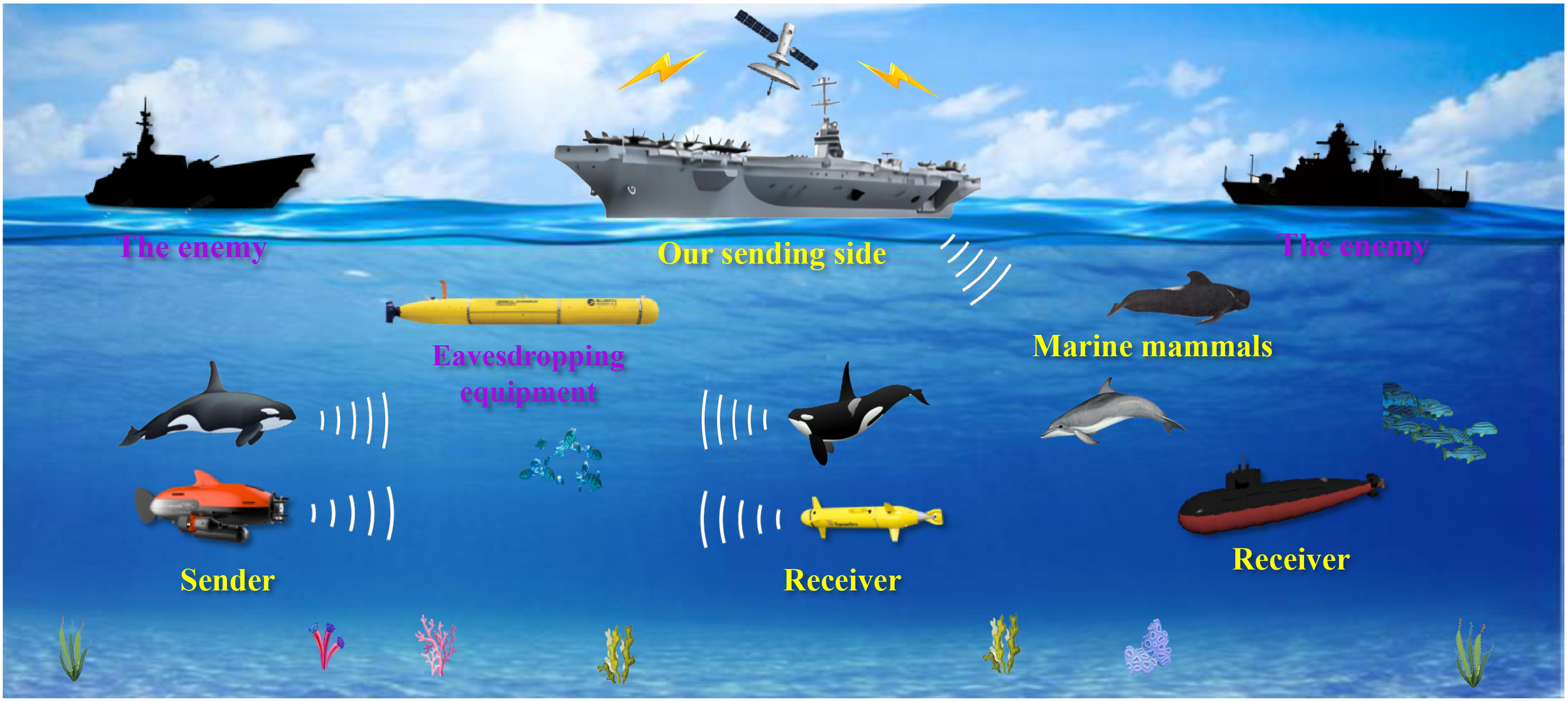 Working principle diagram of bionic covert underwater acoustic communication technology.