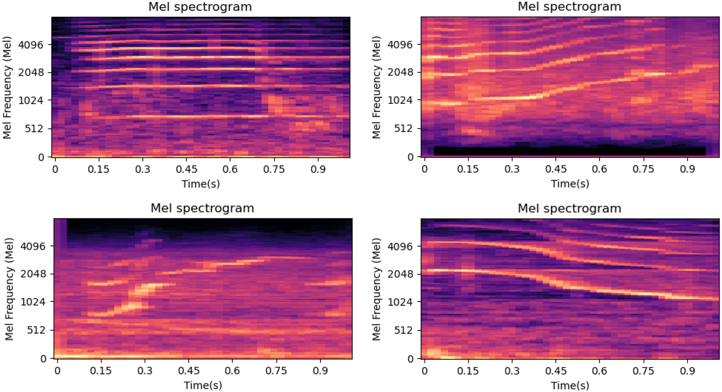 Mel spectrograms generated using SACGAN.