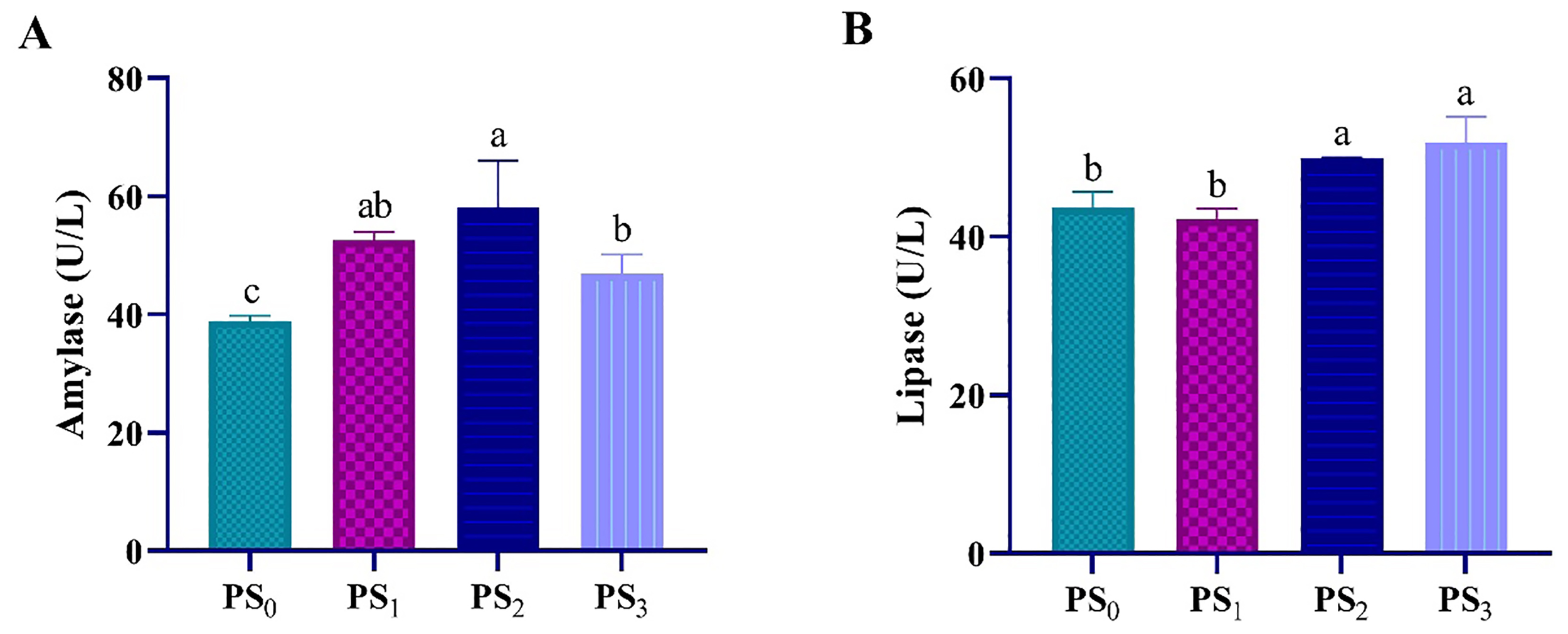 The activities of the digestive enzymes were determined in digestive gland homogenate using colorimetric assays following the manufacturer’s instructions. Specific kits for amylase and lipase were produced by the Biodiagnostic Company, Egypt (Catalog numbers: AY1050 and 281001, respectively). The measurement wavelengths for amylase and lipase were 660 nm (Caraway, 1959) and 580 nm (Moss et al., 1999), respectively.
