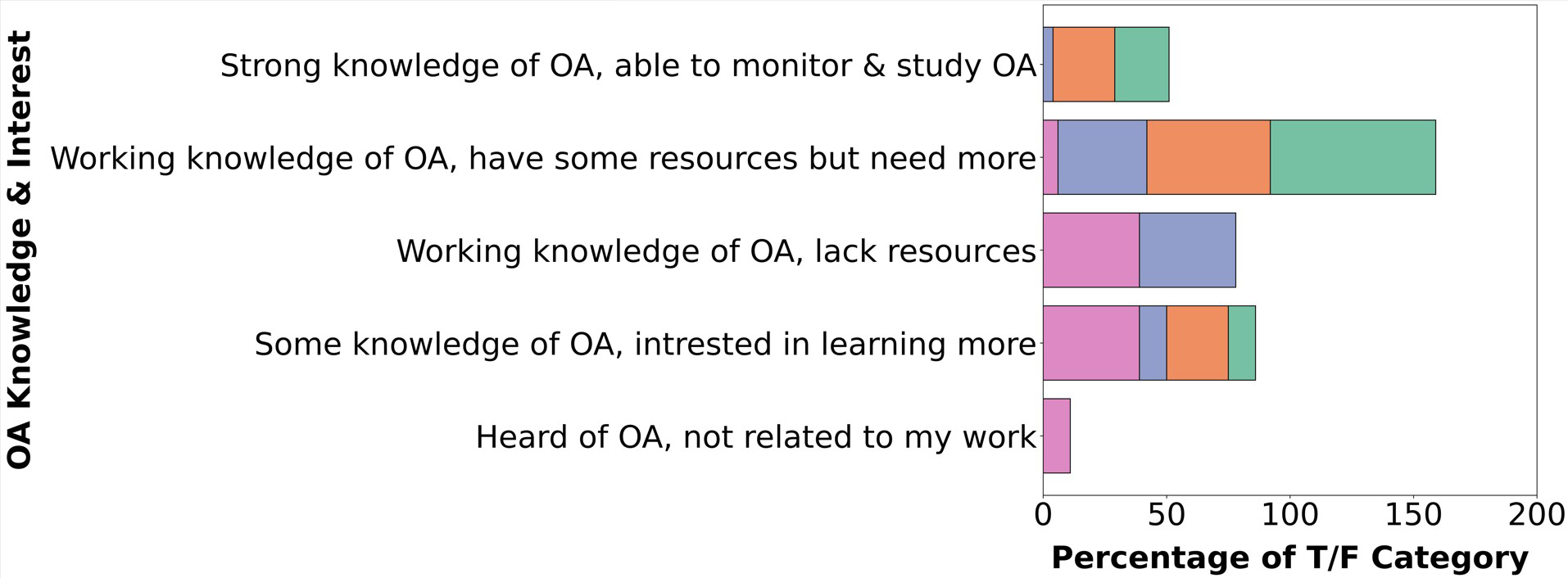 To better understand the unique regional needs and priorities of the wider Caribbean region, our co-author at TOF led members of the CoP to design an OA Needs Based Assessment survey in 2022. This survey aimed to evaluate OA research capacity and identify priorities and challenges related to OA research as well as strategies to strengthen the region’s ability to address these challenges effectively.