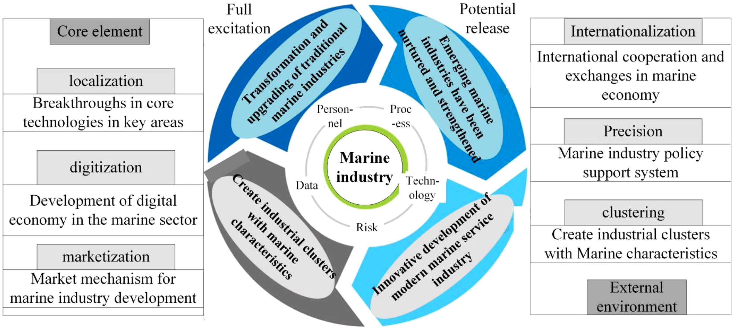 The continuous optimization of the marine science and technology innovation system is the core driving force of NQP and is crucial to the construction of a MMI in China. In view of the double background of the continuous growth of the global economy and the increasing tension of marine resources, the marine industry has become a key field of international competition. As a major maritime country, China has unique advantages in marine resources and vast sea space, and the development of marine industry is of irreplaceable value to the overall progress of the national economy and society.