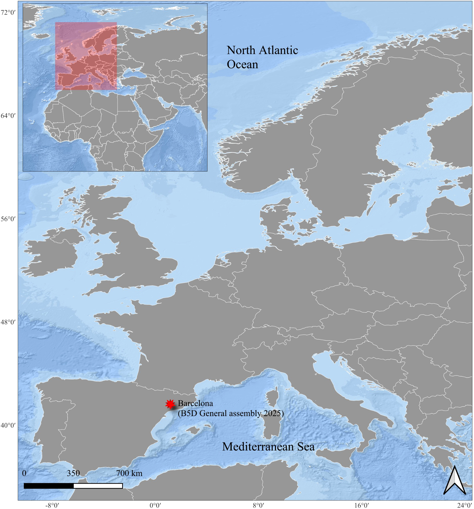 BIOcean5D study region and location where the expert assessment was carried out during the 2025 general assembly (Barcelona).