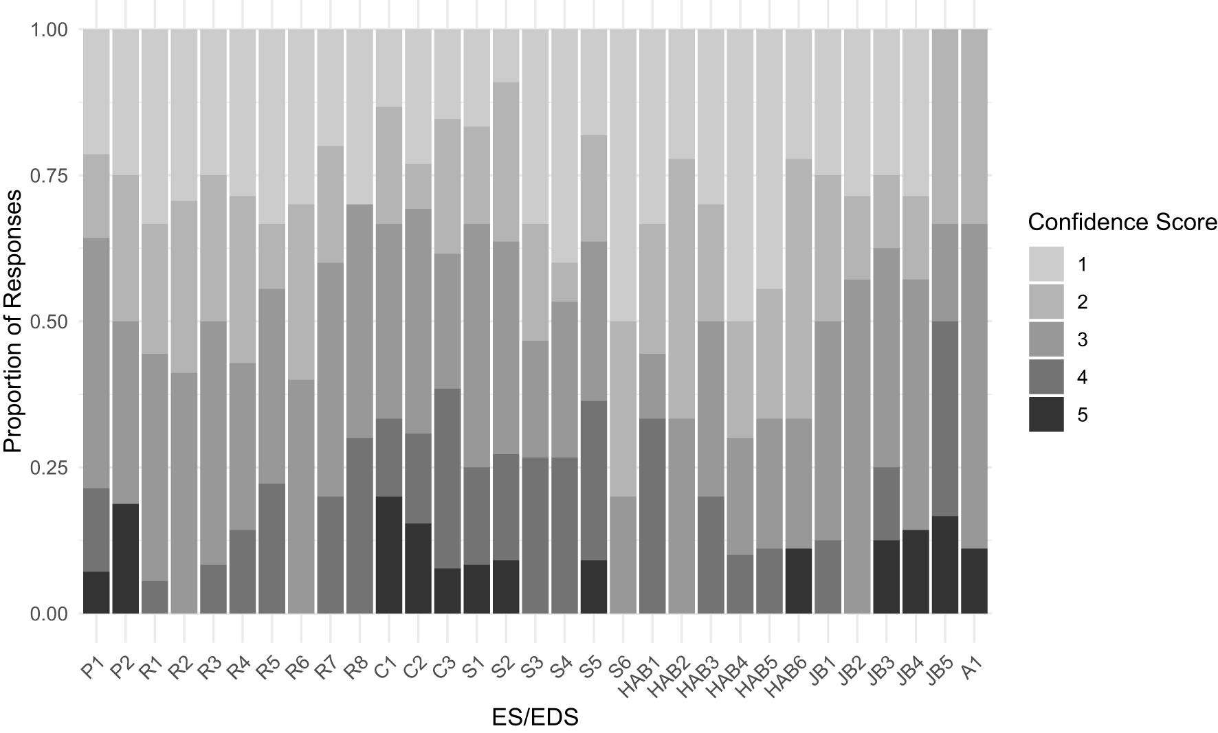 In addition to the expected changes, experts were asked to indicate how confident they were in their answers, measured on a scale from 1 (low confidence) to 5 (high confidence), following the recommendation of Campagne et al. (2017). They could also provide comments and explanations of their scores where they deemed it necessary.