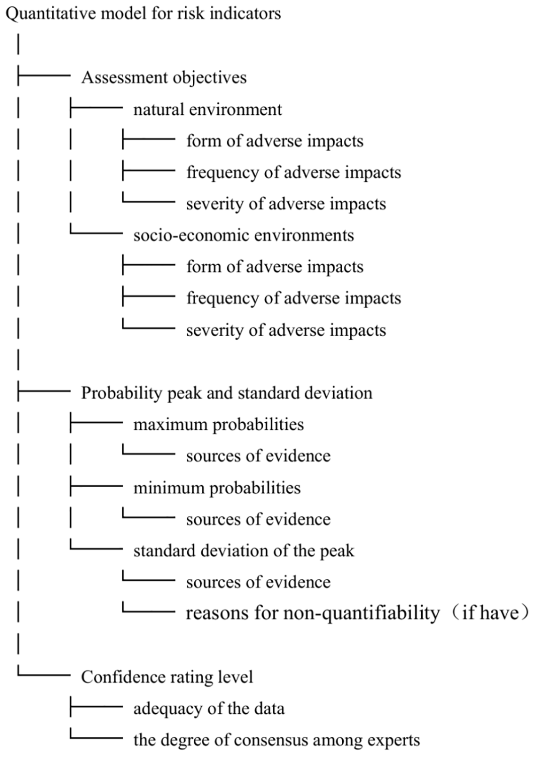 After setting the overall review criteria, it is also necessary to develop a quantitative model for risk indicators within this framework. Despite the many scientific uncertainties associated with mining in “the Area”, it is still possible to identify key environmental risk assessment indicators based on different mineral types, mining technologies, and the richness of ecosystems. A quantitative model for risk indicators can be developed for applicants or contractors to refine according to specific circumstances. The various adverse effects have different scales in terms of time and space, which must be incorporated into a proper environmental risk assessment (Jorgensen and Fath, 2011). Therefore, the quantitative model for risk indicators should primarily include the following three dimensions (Figure 1): (1) Assessment objectives. The focus of environmental risk assessment is the form, frequency, and severity of adverse impacts on the environment caused by human activities, including both natural and socio-economic environments. A comprehensive environmental risk assessment should not only consider what kind of harm may occur and its severity but also evaluate whether such harm is likely to occur frequently or occasionally and the probability of its occurrence. (2) Probability peak and standard deviation. Based on the latest available knowledge and best available technologies, assess the maximum and minimum probabilities of each risk occurring, calculate the standard deviation of the peak, and specify the sources of evidence used in the assessment. If it is not possible to quantify the probability, the scientific reasons for this inability should be clearly explained. (3) Confidence rating level of the basis for risk assessment. The need to assign a confidence rating to the basis of risk assessment judgments stems from the presence of numerous uncertainties. The so-called confidence rating level refers to the adequacy of the data used in the risk assessment and the degree of consensus among experts in the field. For example, if a risk judgment is supported by reliable data and achieves a high degree of expert consensus, the confidence level of the assessment basis is the highest; conversely, it is the lowest. Therefore, the confidence rating level best reflects whether an environmental risk assessment has been conducted thoroughly using the best available technologies and good industry practices. It also reflects the degree of community acceptance, representing a shift from purely objective scientific rationality to community rationality.