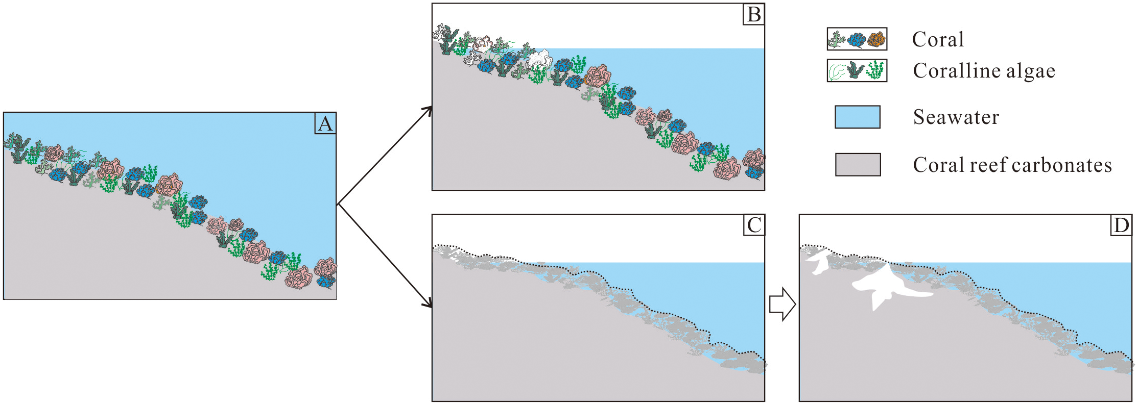 Coral reefs represent one of Earth’s most biodiverse ecosystems, accounting for 32–43% of shallow marine calcium carbonate production and playing a crucial role in global carbon cycling (Frankignoulle and Gattuso, 1993; Suzuki et al., 2001; Yan et al., 2009; 2016; Jiao et al., 2018). These ecosystems modulate atmospheric CO2 through both calcification (CO2 release) and dissolution (CO2 uptake) (Berger, 1982; Berger and Keir, 1984; Opdyke and Walker, 1992; Archer et al., 2000; Fagan and Mackenzie, 2007; Purkis et al., 2010; Andersson, 2015; Lonborg et al., 2019; Yan et al., 2019). However, their dissolution contributions remain underestimated in modern carbon budgets due to the stable seawater pCO2 conditions (Purkis et al., 2010; Andersson, 2015). The karstification of coral reef carbonate, particularly during subaerial exposure, represents a key but poorly constrained component of this carbon cycle.