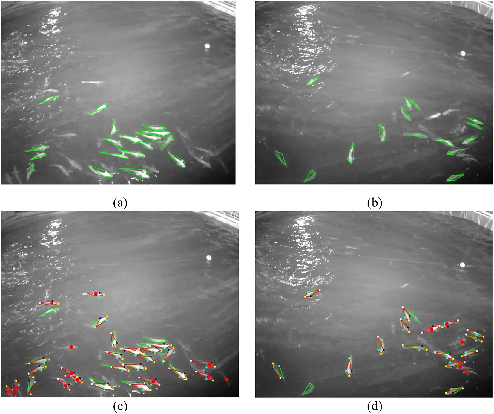 Fish keypoints detection depends on careful sensor selection and placement, as well as effective algorithm design. Typically, fish images are captured using either underwater cameras (Labao and Naval, 2019; Salman et al., 2020) or above-water cameras (Li et al., 2022; Han et al., 2020). Underwater cameras, despite their ability to capture close-up images, have significant practical limitations, including a narrow field of view, poor image quality, and a tendency to biofouling, which necessitates frequent cleaning and results in high maintenance costs (Reyes et al., 2020; Salama et al., 2018). In contrast, our setup employs above-water infrared cameras (Li et al., 2024), offering a wider field of view, clearer images, and insensitivity to lighting conditions, all while minimizing maintenance costs. This configuration is particularly well-suited for long-term monitoring of fish species that exhibit nocturnal water-surface activity, such as the Cobia (Rachycentron canadum).