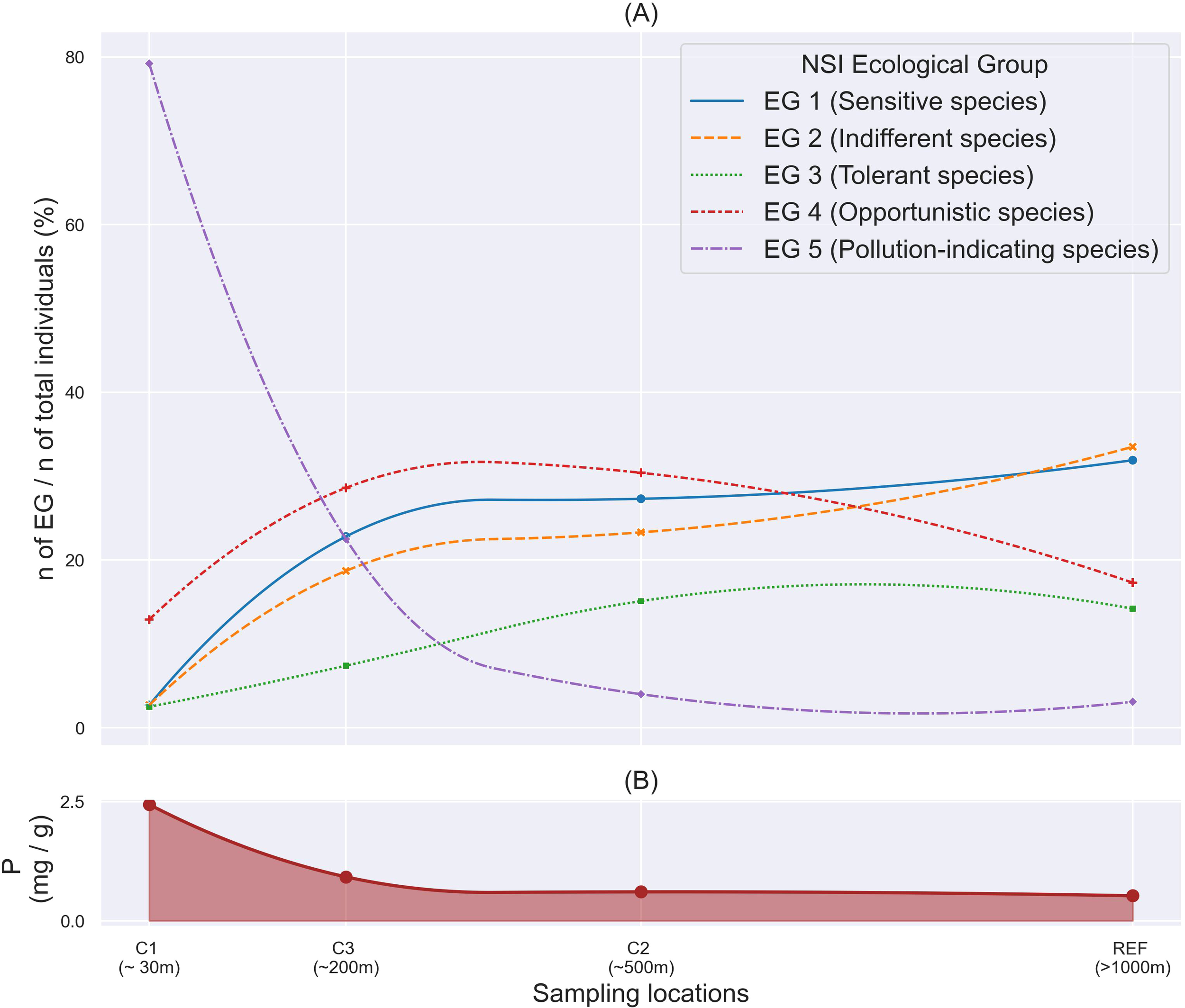 Macrofaunal species were classified using Norwegian sensitivity Index (NSI) into five ecological groups (EG): sensitive species (EG 1), indifferent species (EG 2), tolerant species (EG 3), opportunistic species (EG 4), and pollution indicating species (EG 5) (Borja et al., 2000).