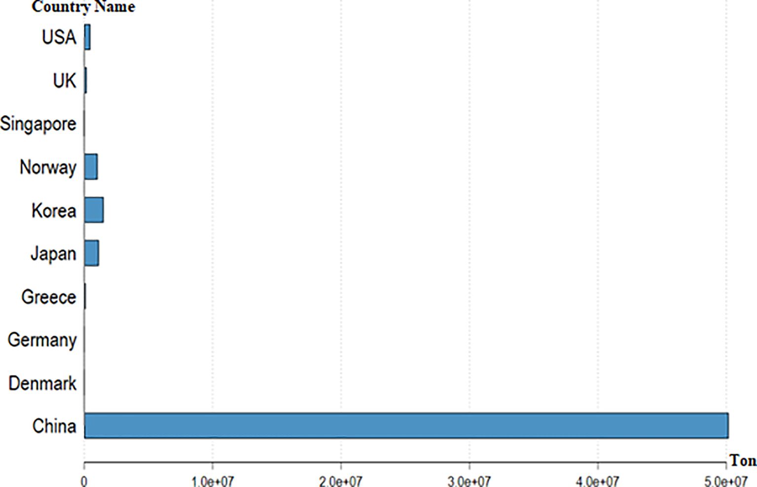 This study analyzes the influence of biodiversity on the blue economy for the 10 economies with the highest income from the seas and oceans in the 2000–2021 period. In this study, three variables (TFP, AFP, and FGDP) were selected to represent the blue economy following Alharthi and Hanif (2020), Hossain et al. (2024), Ahammed et al. (2025). According to Hossain et al. (2024), fishing and mariculture enhance coastal livelihoods, create jobs, and sustain ocean ecosystems by preserving fish stocks. This study uses total fisheries and aquaculture production in metric tons as dependent variables. Figures 1–3 present blue economy indicators. It is seen that China ranks first in the blue economy.