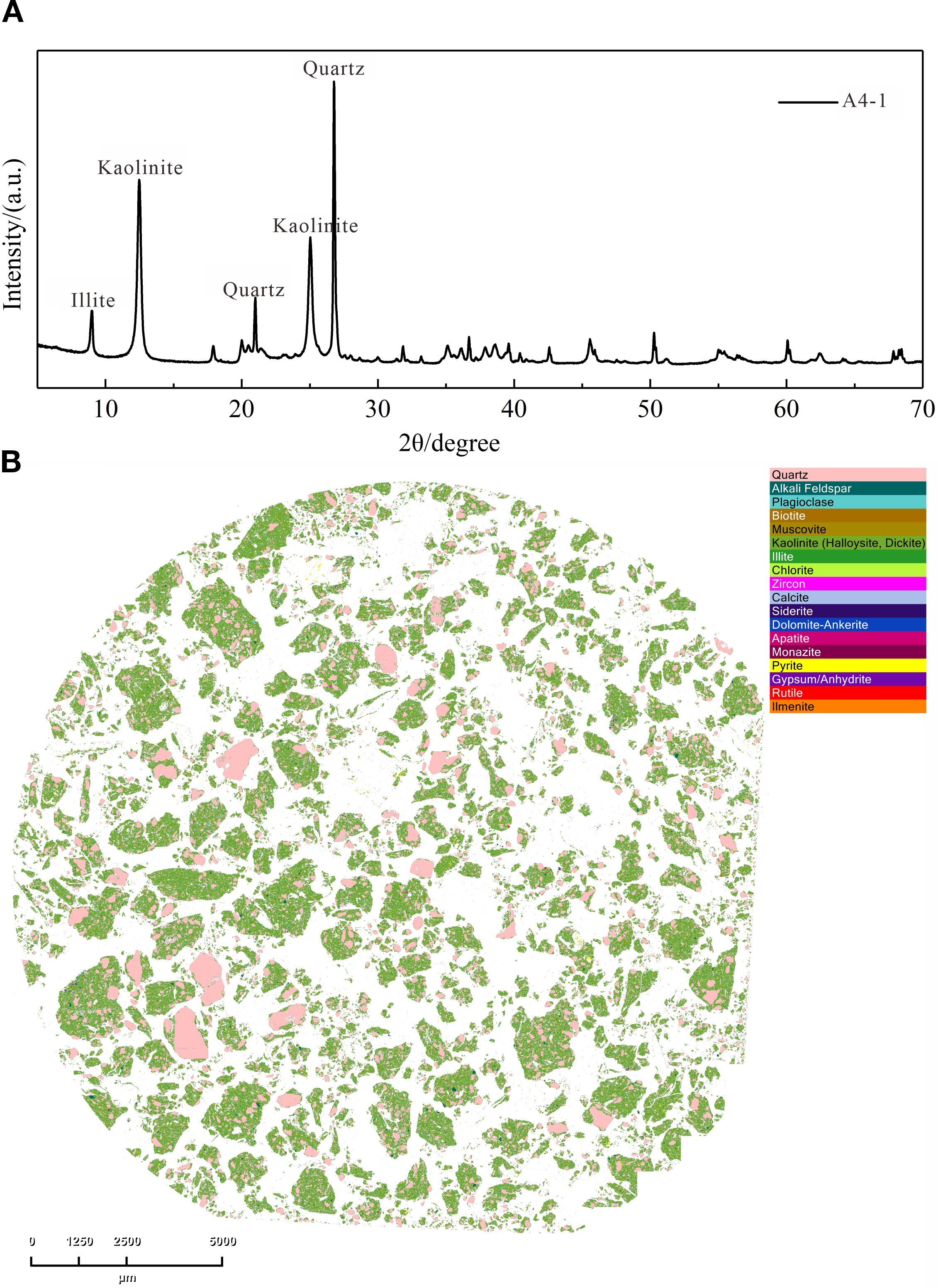 To address limitations in XRD detection thresholds for trace mineral phases (<2 wt%), supplementary Maps Mineralogy analyses were implemented. Results confirm the dominance of kaolinite-quartz-illite assemblages while identifying a secondary mineral suite comprising (Figure 4):