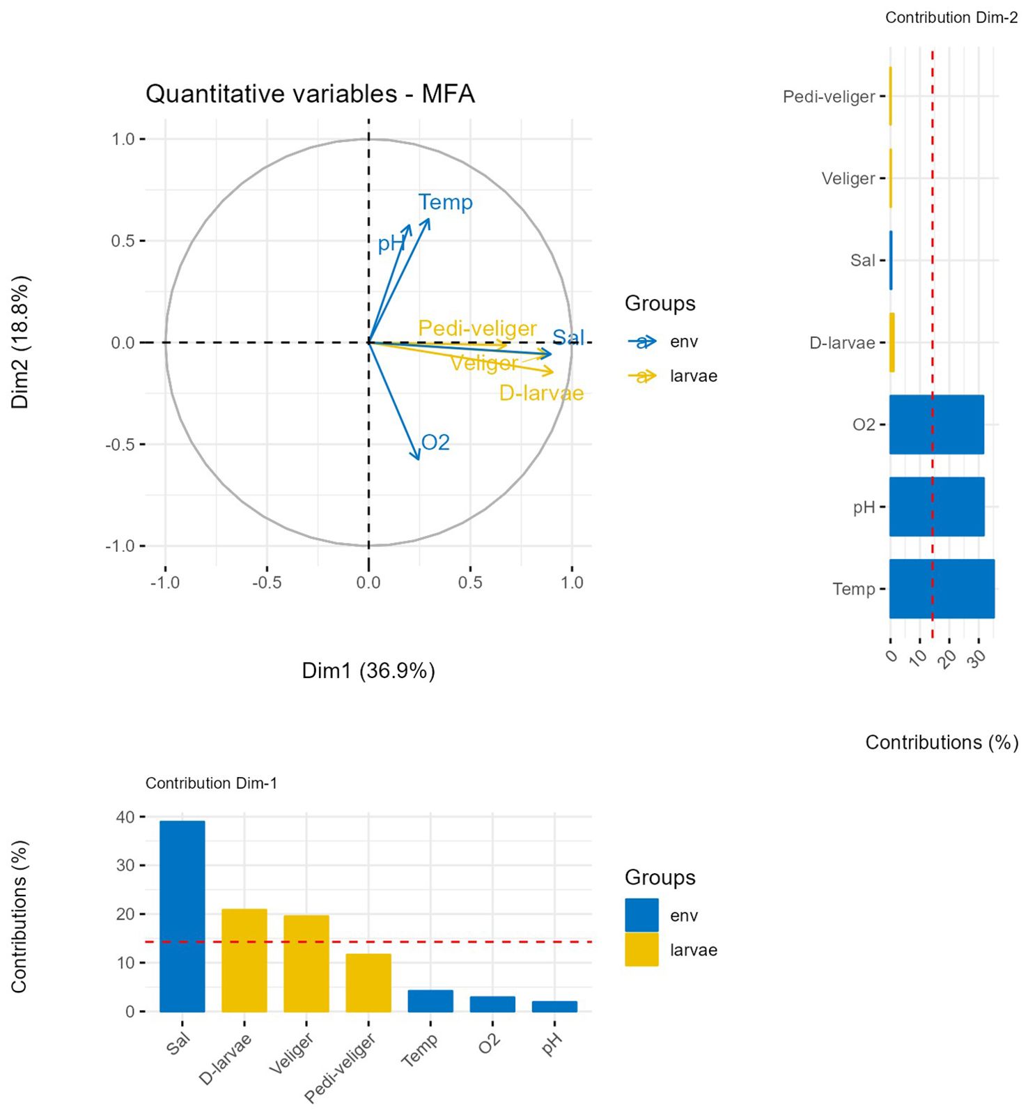 Figure 4. MFA (Multiple Factor Analysis) conducted on the quantitative data (larval density) and environmental variables.