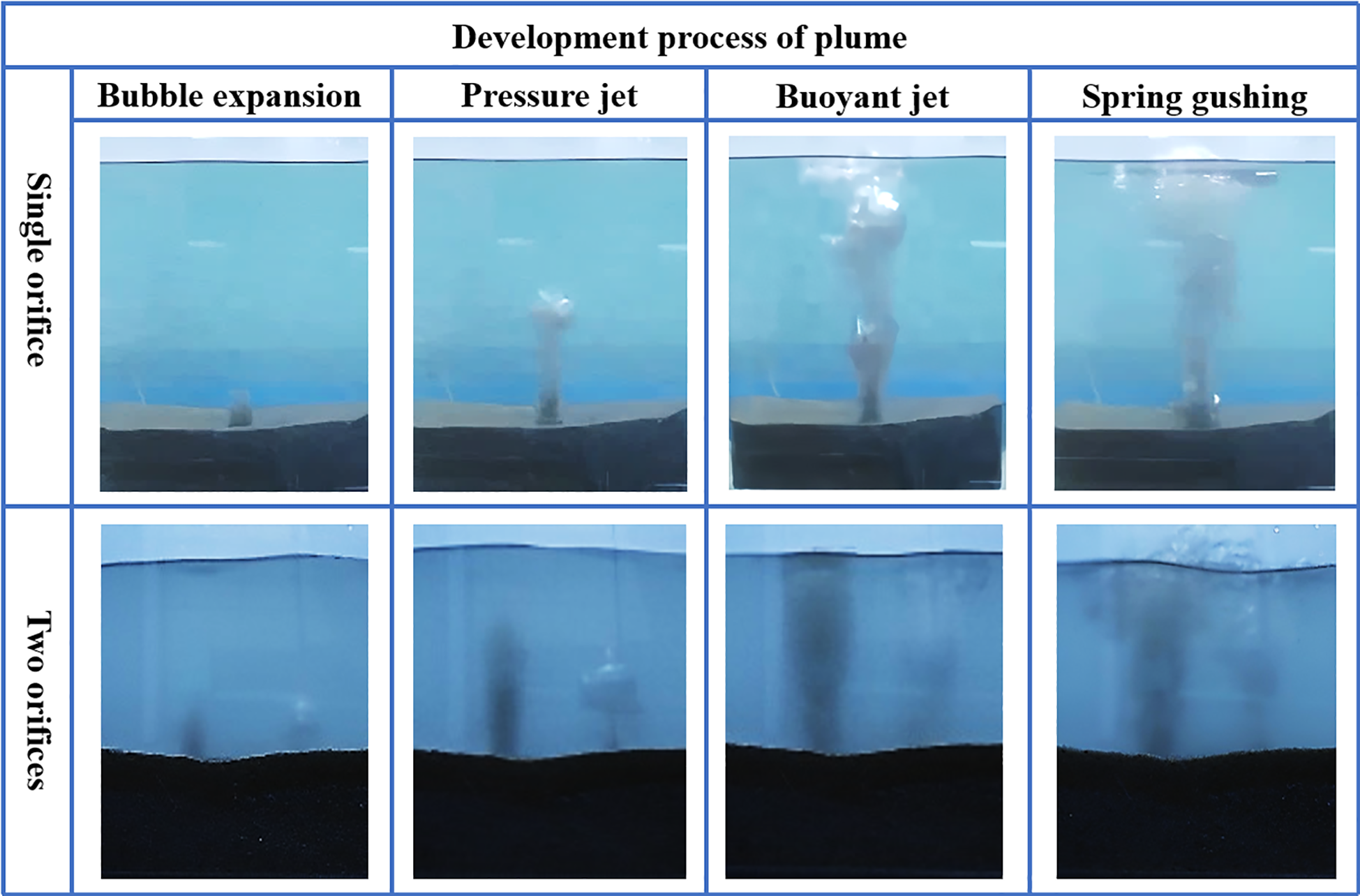 Development process of plumes in single and two orifice releases.