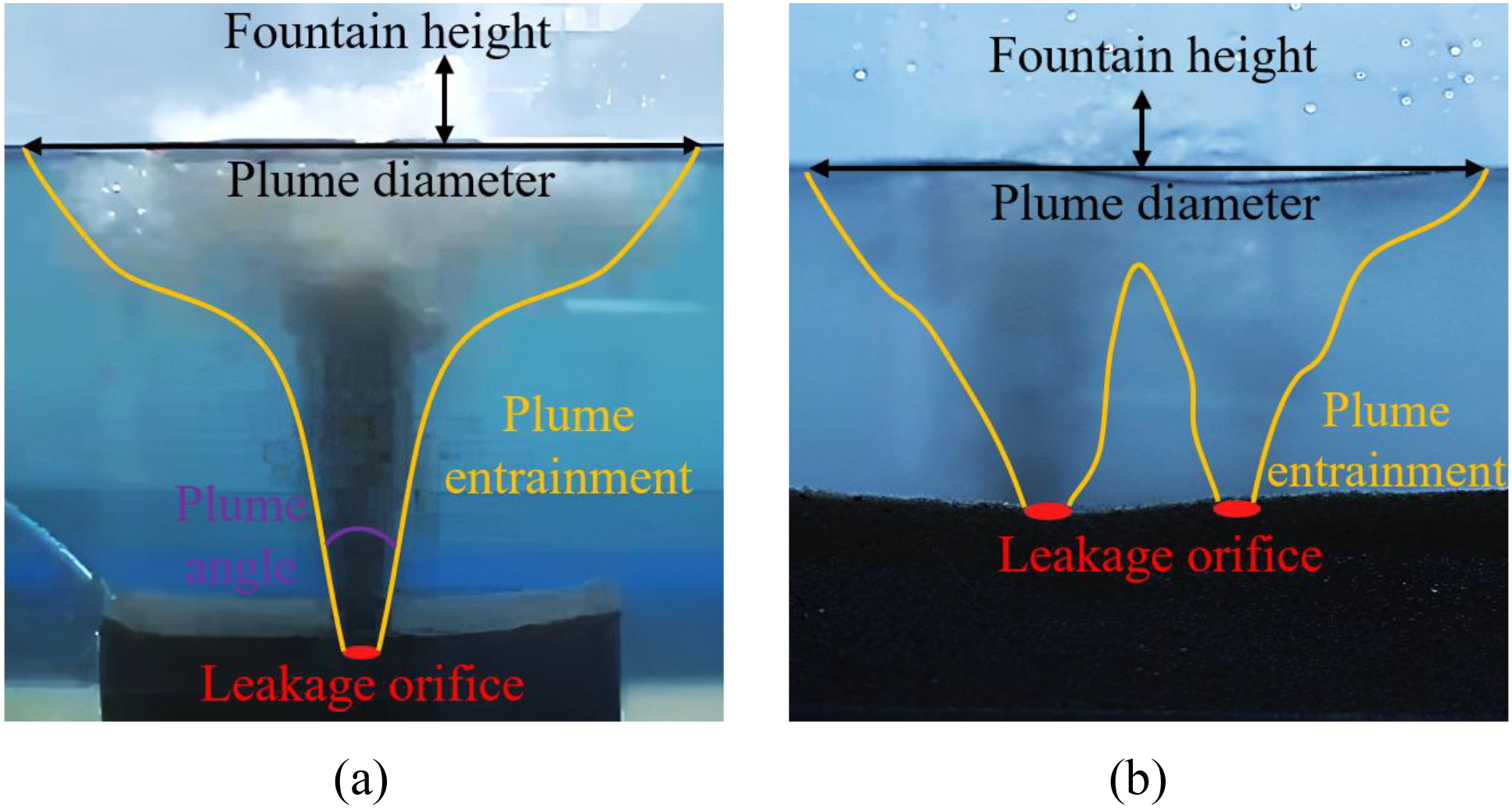 Plume morphology at steady state: (a) single orifice; (b) two orifices.