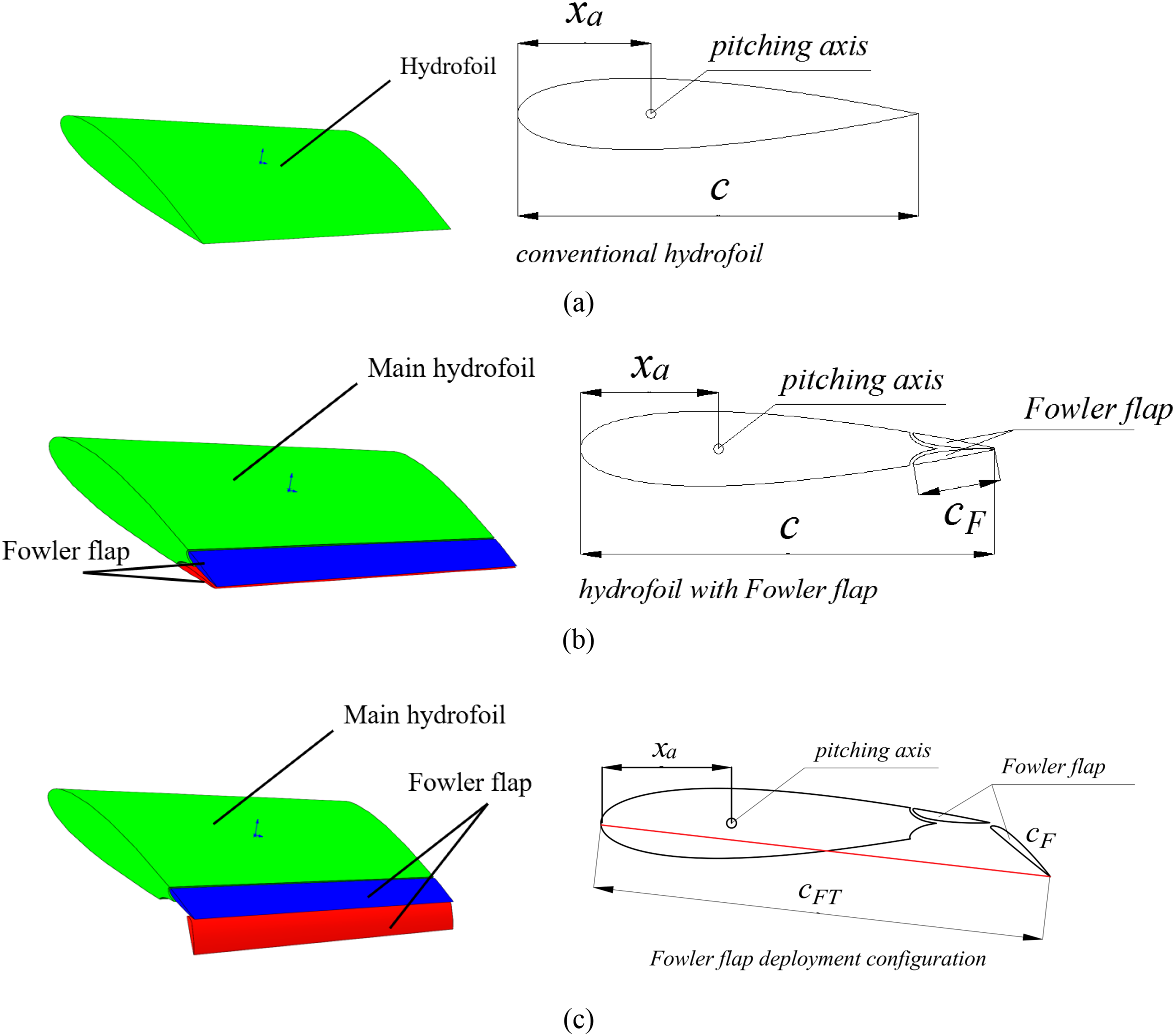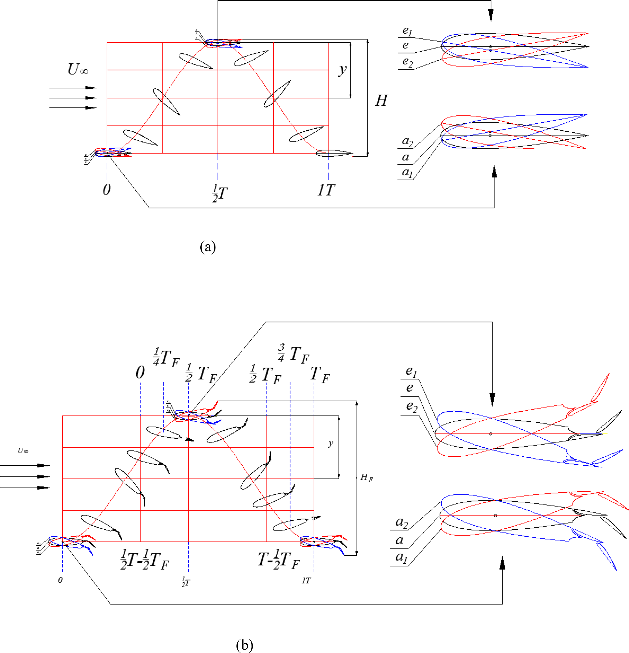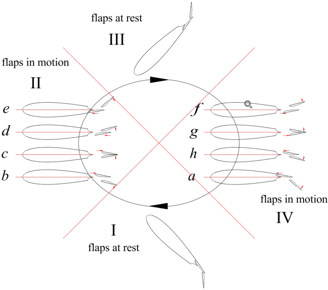 (a, b) A periodic motion form of oscillating hydrofoil with Fowler flap.