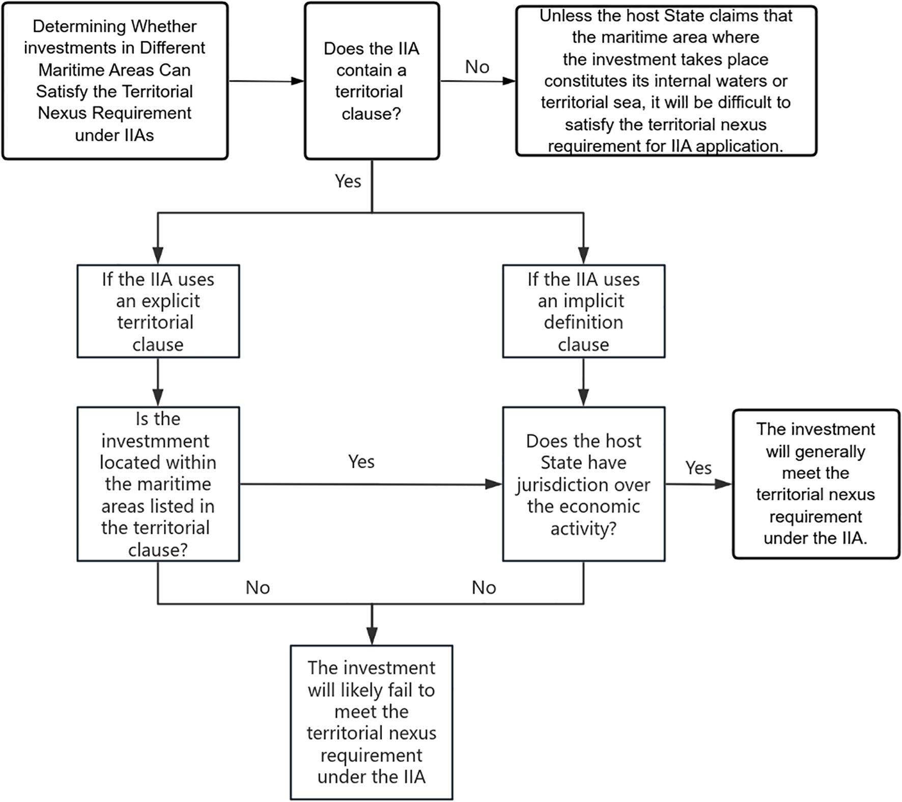 Figure 1. Flowchart for determining territorial nexus of investments in maritime zones under IIAs. Source: author’s own compilation.